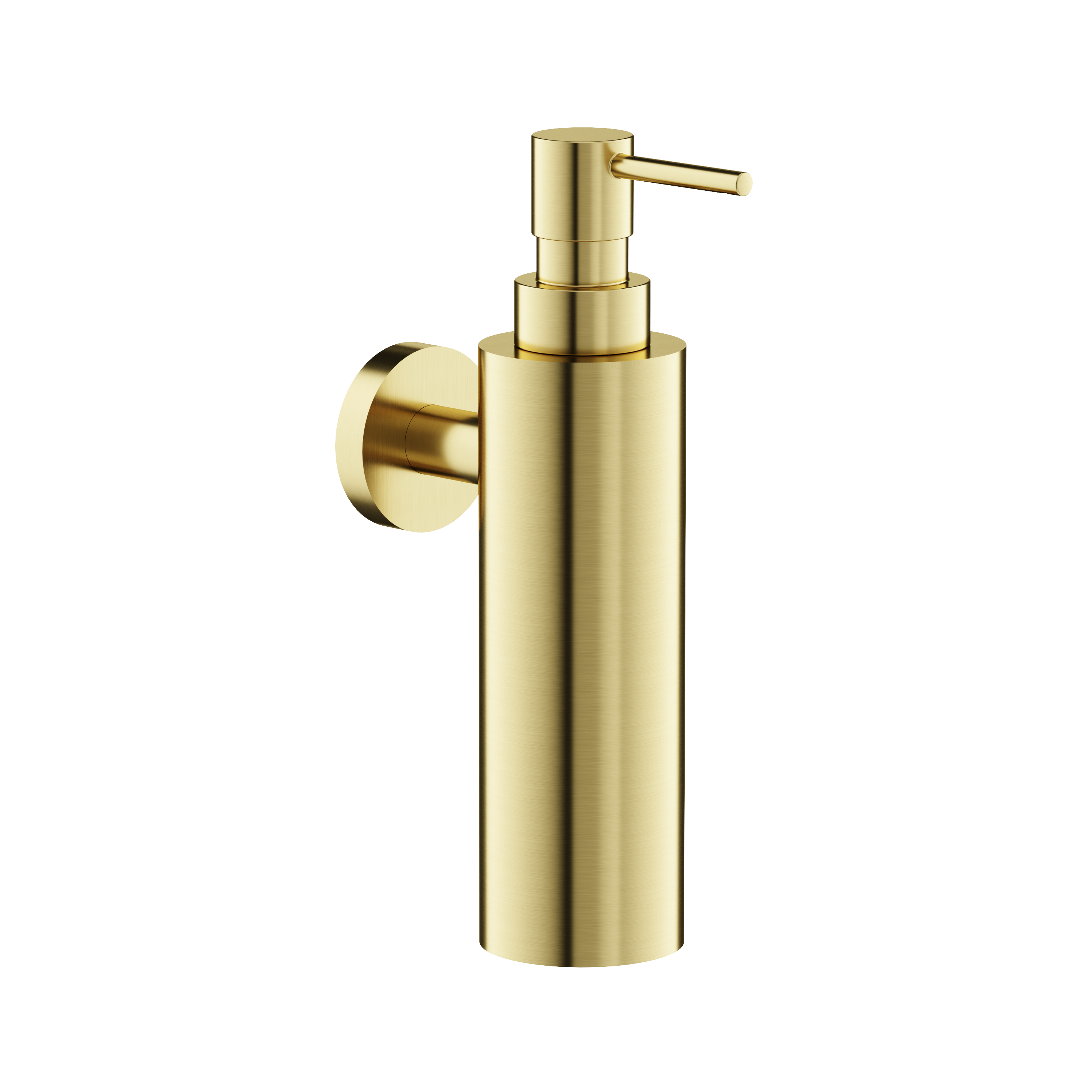 Дозатор для жидкого мыла подвесной; Размер 197x52; Материал- латунь; Крепления в комплекте; Экстра прочное покрытие PVD ; Цвет брашированное золото