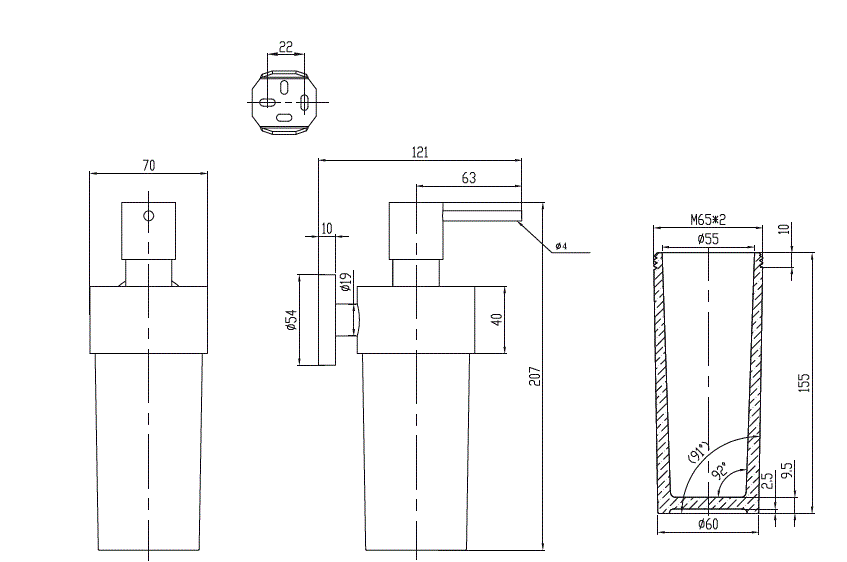 Elements – Tender Дозатор для мыла, 70 x 120 x 209 mm, Хром