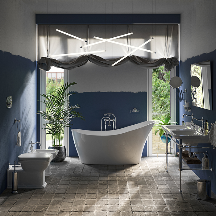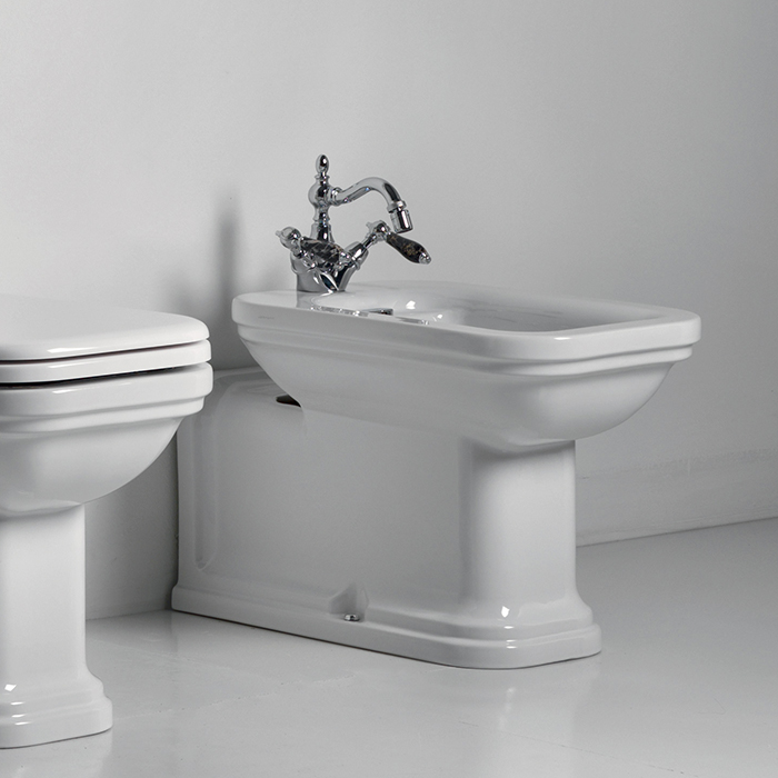 Kerasan waldorf биде напольное пристенное удлиненное "prolongato" 65х37см с 1 отв. под смеситель, цвет: белый/хром