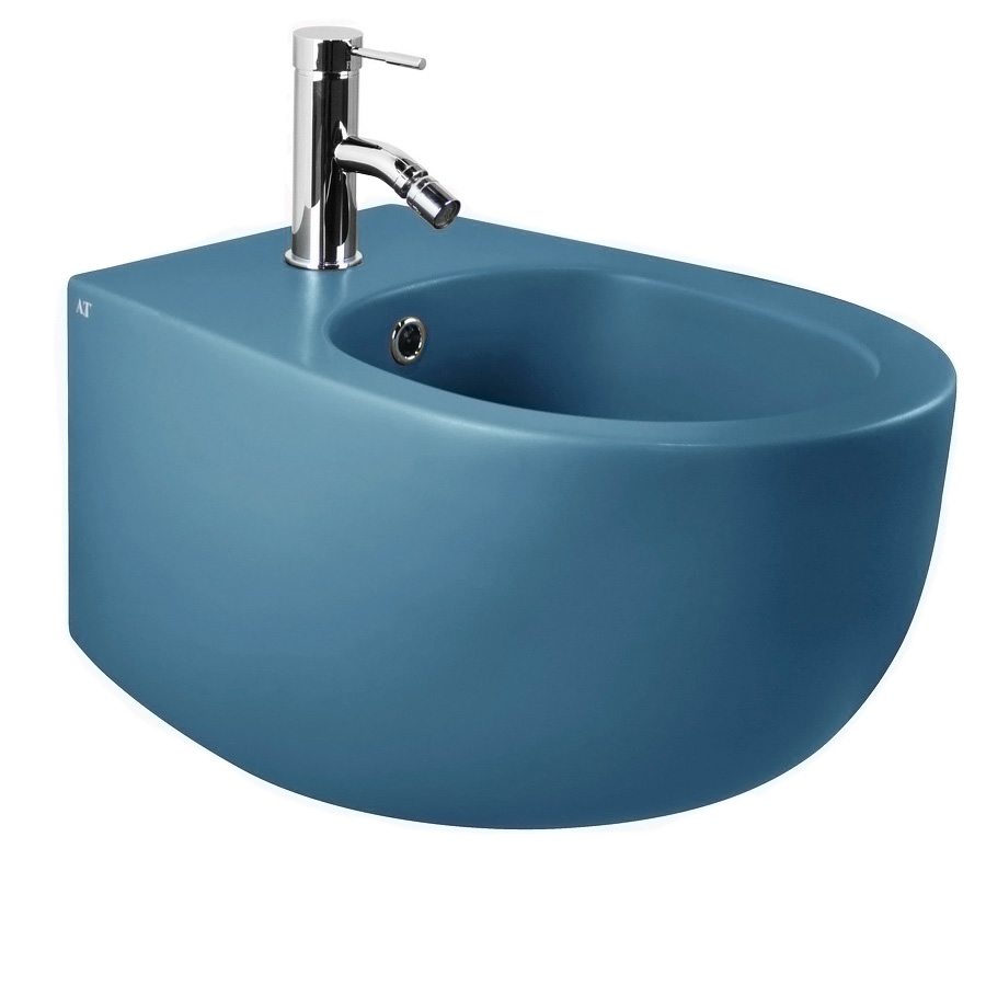 Биде подвесное AeT, цвет голубой матовый. В комлект поставки входит скрытая система крепления. С одним отверстием под смеситель.