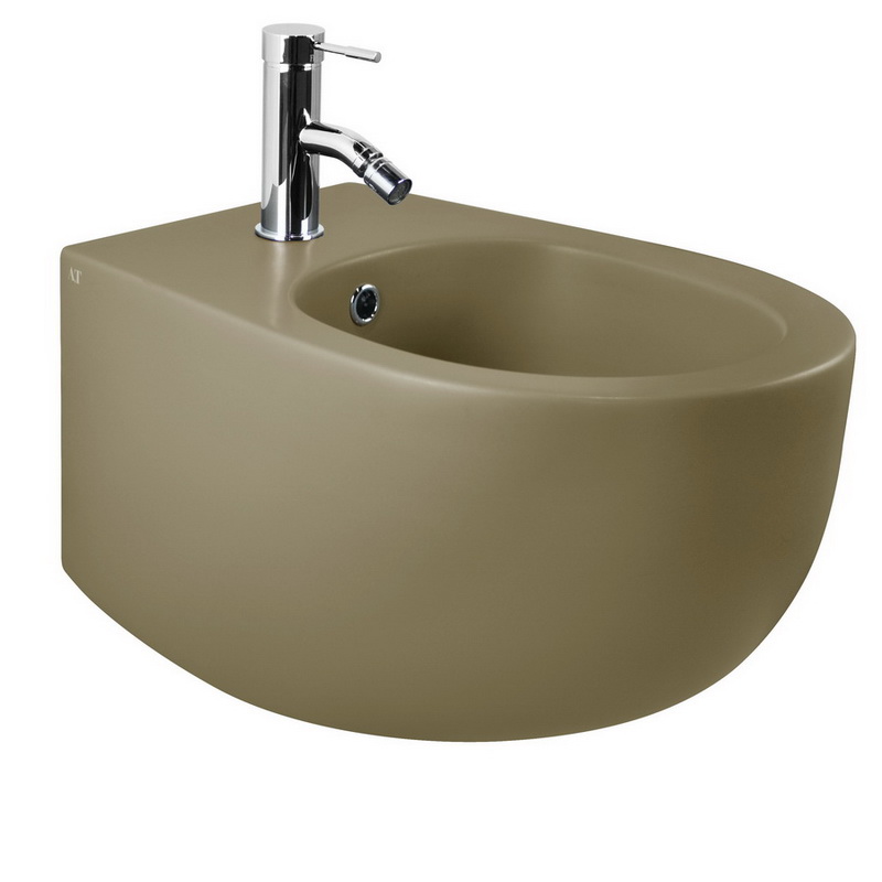 Биде подвесное AeT, цвет горчица. В комлект поставки входит скрытая система крепления. С одним отверстием под смеситель.