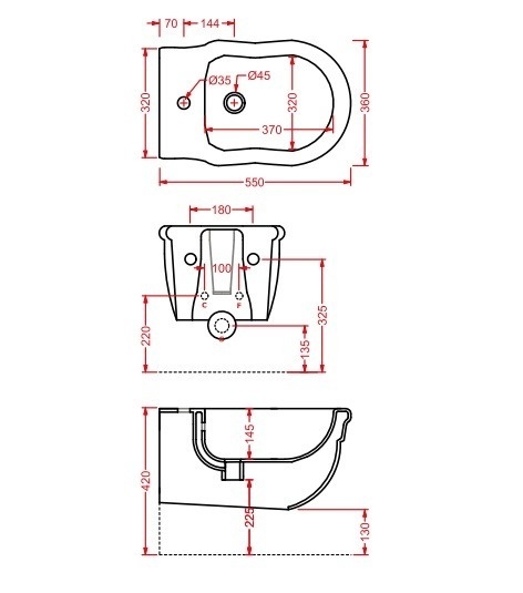 Биде подвесное белый глянцевый 290x360x550 hermitage artceram