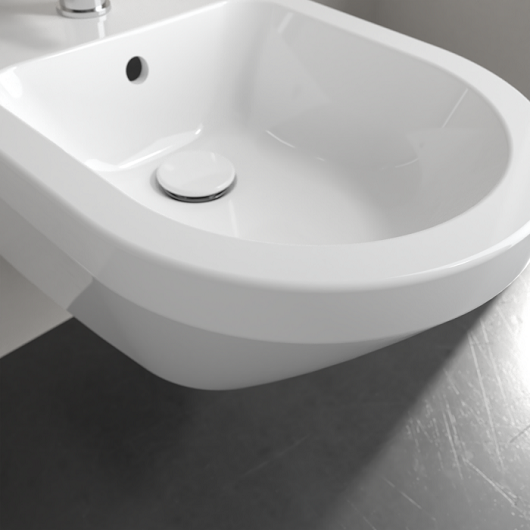 Биде, Villeroy&Boch, Architectura, тип установки-подвесной, ширина, мм-370, глубина, мм-530, высота, мм-270, форма чаши-овальная, отверстия для смесителя-1, крепления-в комлпекте, цвет-альпийский белый