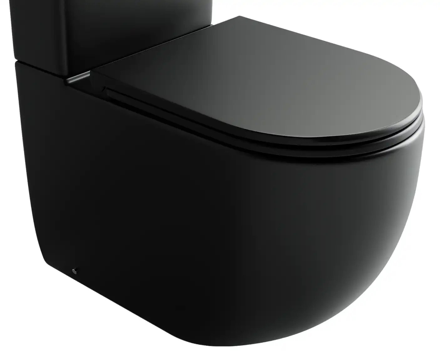 Напольная пристенная чаша унитаза METROPOL, смыв торнадо, нижняя подводка, глубокий смыв, горизонтальный выпуск, с крепежом и сиденьем-крышкой с микролифтом (цвет черный матовый)