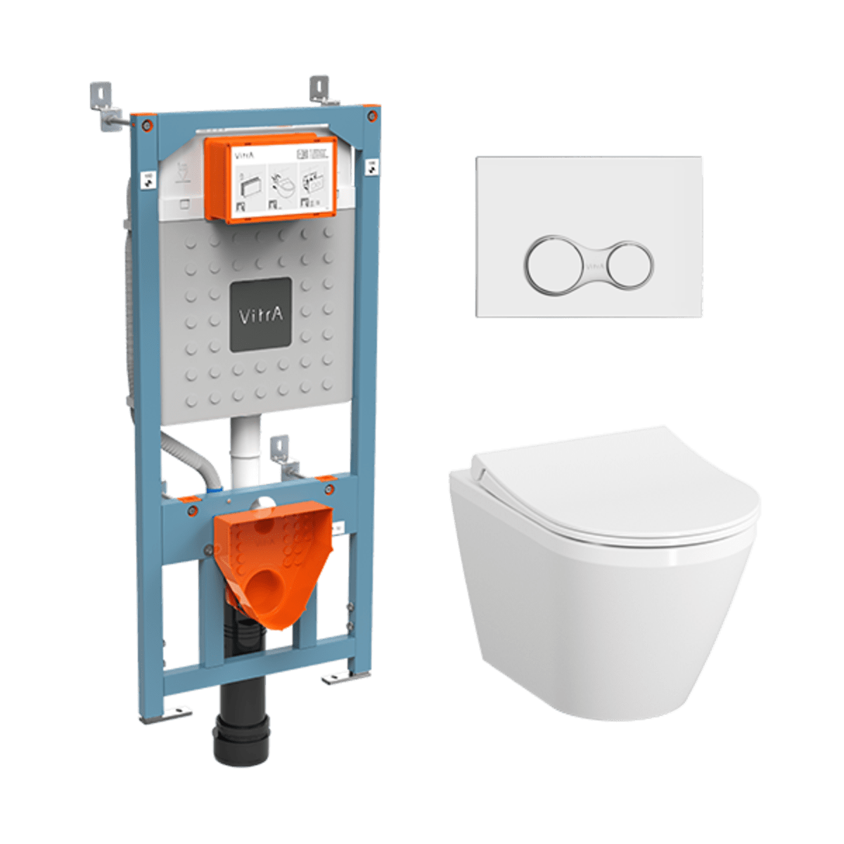 Комплект 4 в 1 VitrA Integra Round 9856B003-7205 — это готовое высокотехнологичное решение для современной ванной комнаты от ведущего турецкого бренда. В набор входит инсталляция, подвесной безободковый унитаз из санитарного фарфора, сиденье с механизмом микролифт и стильная клавиша смыва в цвете глянцевый хром. Благодаря продуманной конструкции от дизайн-студии VitrA, установка системы занимает минимум времени, а скрытый монтаж позволяет эстетично спрятать все коммуникации, визуально расширяя пространство помещения.
