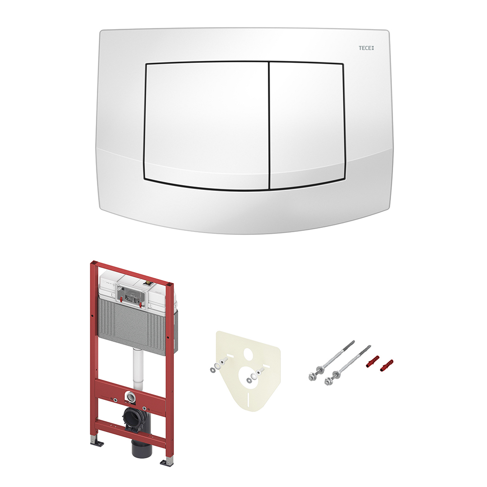 Комплект для установки подвесного унитаза: застенный модуль, пластиковая панель смыва teceambia, белая