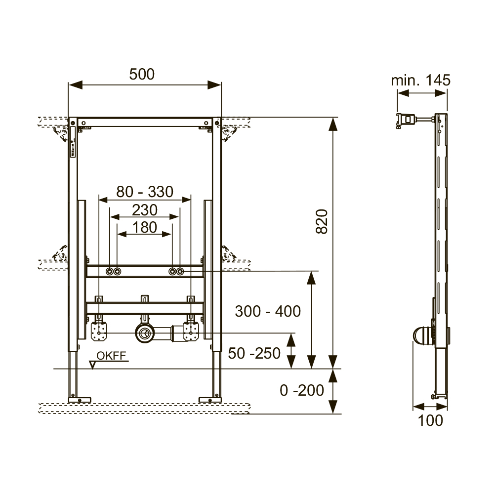 - Два крепления модуля с регулировкой по глубине Вместе с телескопическим креплением (арт. 9380001) может использоваться для монтажа TECEprofil перед стеной на монтажной высоте 980 мм.