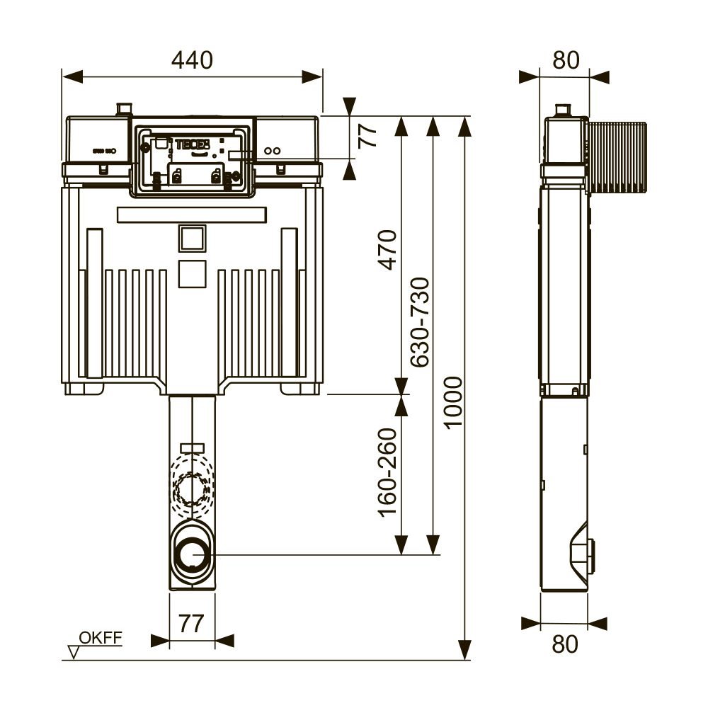 Сливной бачок tecebox octa ii, 8 см, для напольного унитаза, с арматурной сеткой, установочная высота 1075 мм
