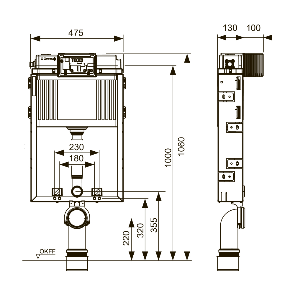Застенный модуль tecebox со смывным бачком uni 2.0, высота 1060 мм