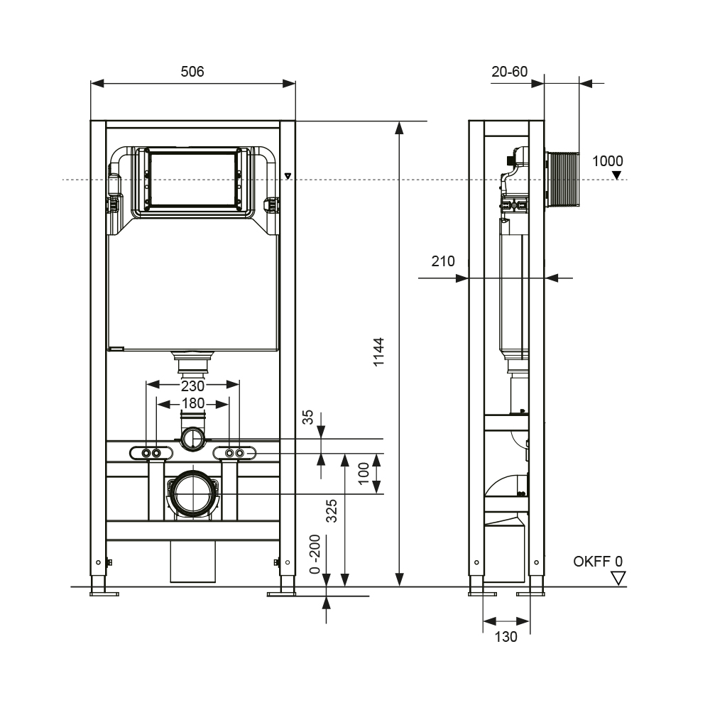 Застенный модуль tecespring на четырех опорах, высота 1144 мм