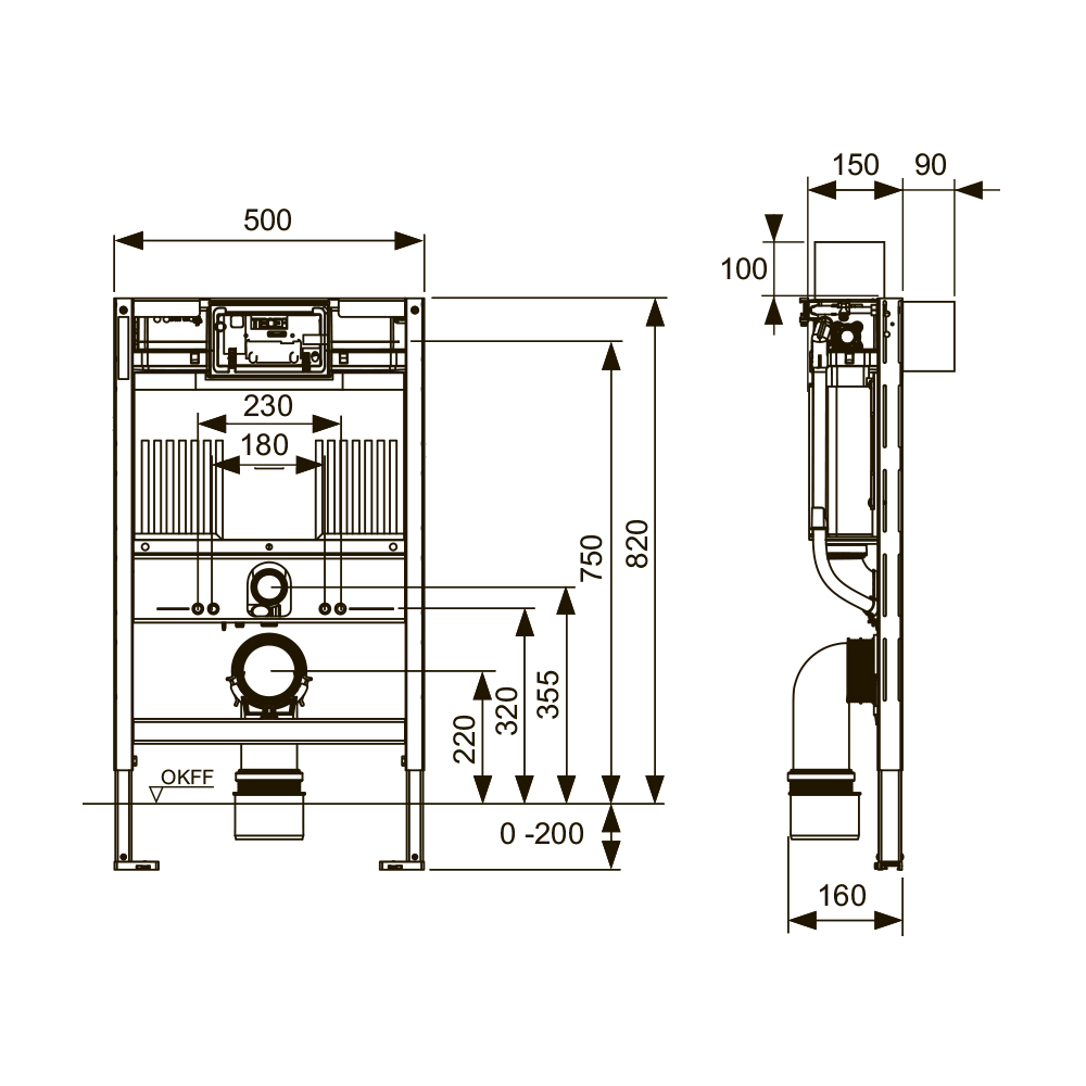 Если используется унитаз с уменьшенной опорной поверхностью (расстояние от середины крепежной шпильки до нижней кромки опорной поверхности не превышает 18 см), например, Villeroy & Boch Memento, Subway 2.0 необходимо установить комплект стальных кронштейнов (арт. 9041029) в нижней части конструкции.