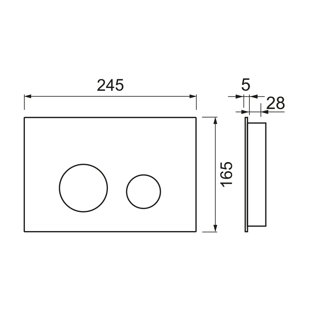 Пластиковая панель смыва для унитазов c двумя режимами смыва. Две клавиши, плоский дизайн, фронтальная установка.