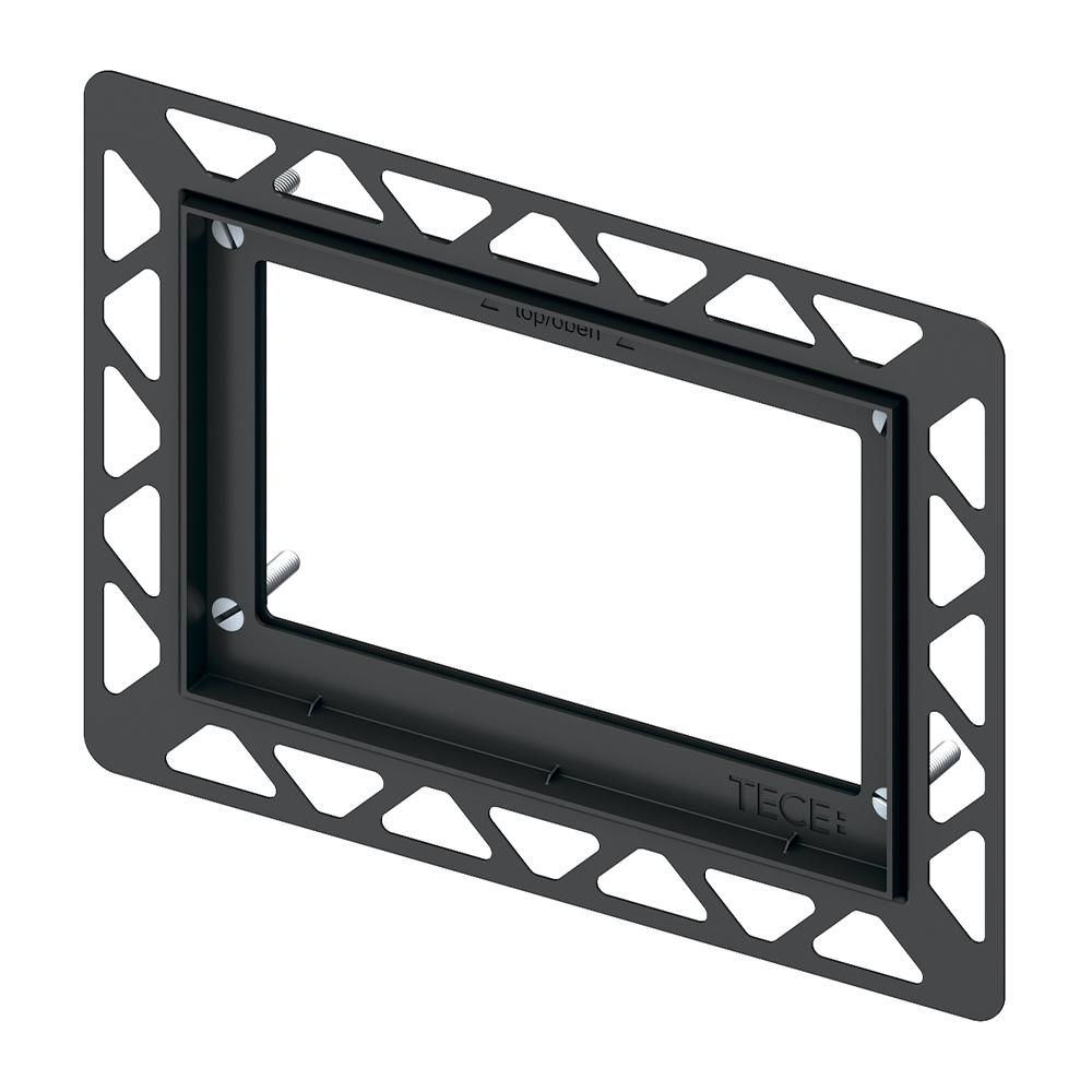 Монтажный комплект для установки стеклянных панелей смыва унитаза TECEloop/TECEsquare, TECElux Mini, а также TECEnow на уровне стены. Рамка для облицовки стеновой плиткой с регулированием глубины в диапазоне 5–18 мм (18–33 мм с использованием регулировочных болтов арт. 9820181). В комплект входит инструмент для монтажа/демонтажа панели смыва.