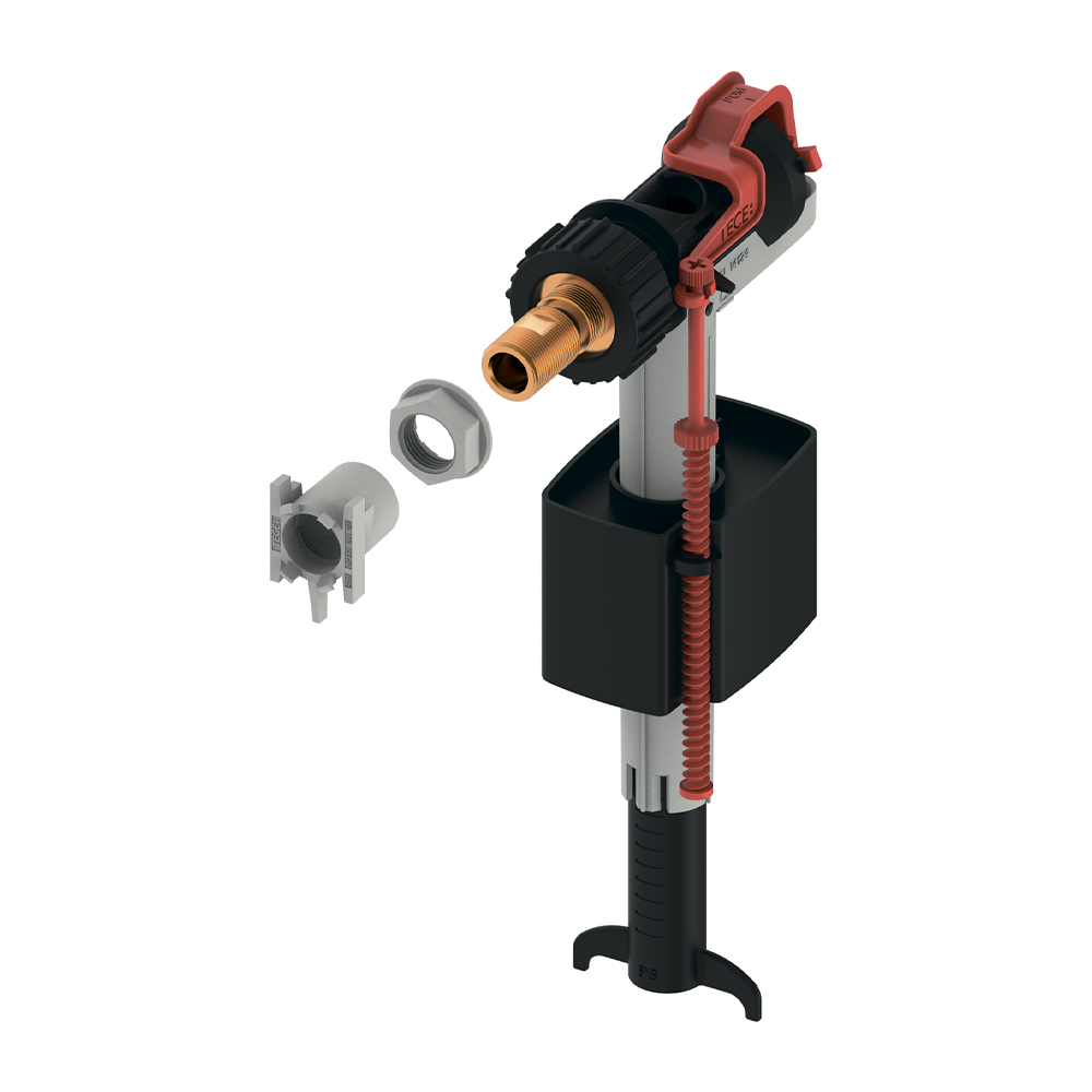 Универсальный заливной клапан для установки во всех сливных бачках TECE, а также в большинстве сливных бачков скрытого и открытого монтажа других производителей.