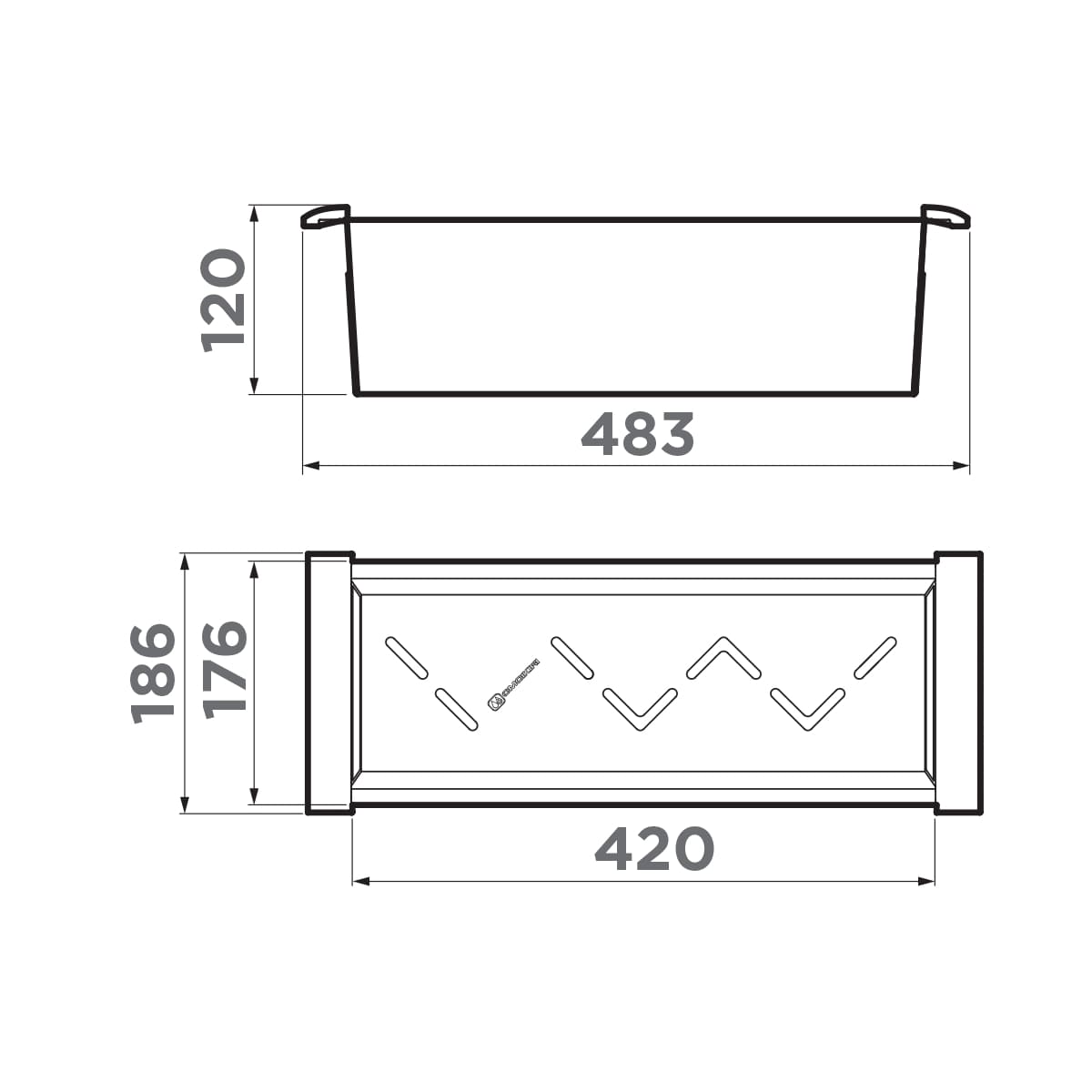 • Материал: нержавеющая сталь, • Цвет: нержавеющая сталь, • Параметры: 483x186x120 мм.