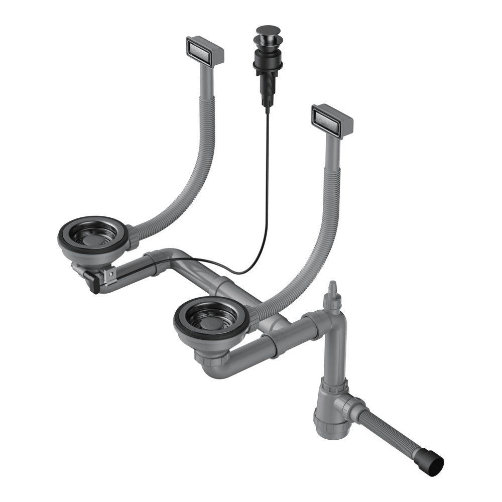 • Арматура с клапаном-автоматом для двухчашевых моек с прямоугольными переливами;