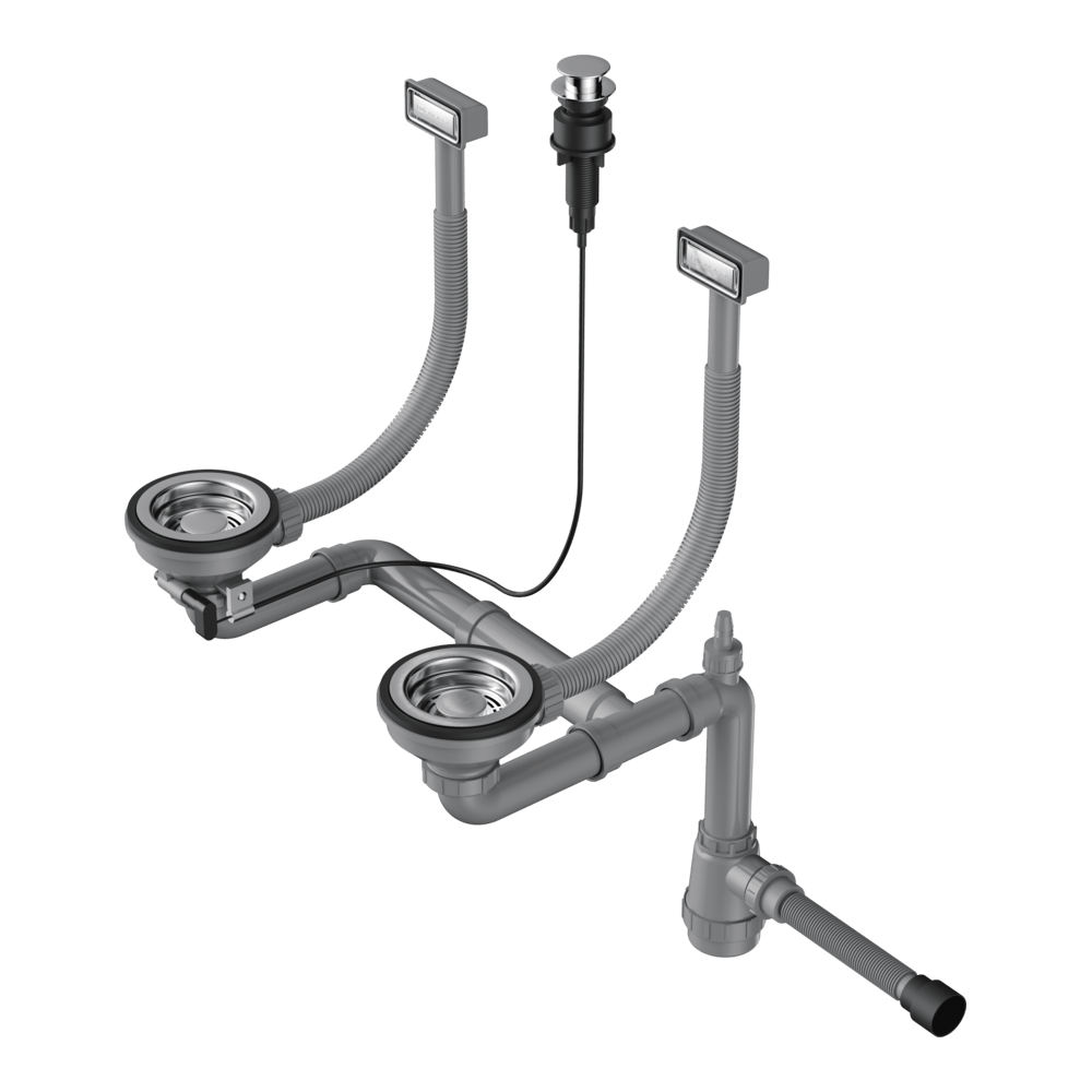 • Арматура с клапаном-автоматом для двухчашевых моек с прямоугольными переливами;