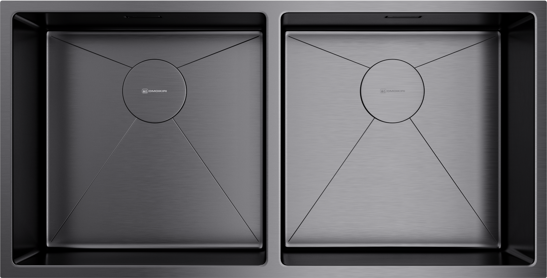 Кухонная мойка omoikiri taki 86-2-u/if-gm нерж. сталь/вороненая сталь 865 x 440 x 200
