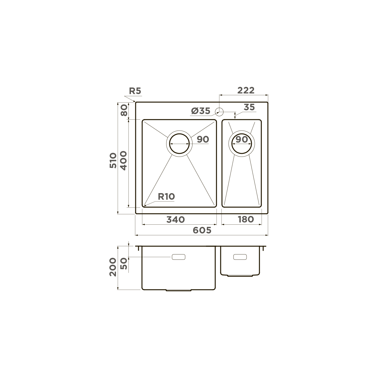 Кухонная мойка omoikiri akisame 60-2-l-in нерж. сталь/нержавеющая сталь 605 x 510 x 200