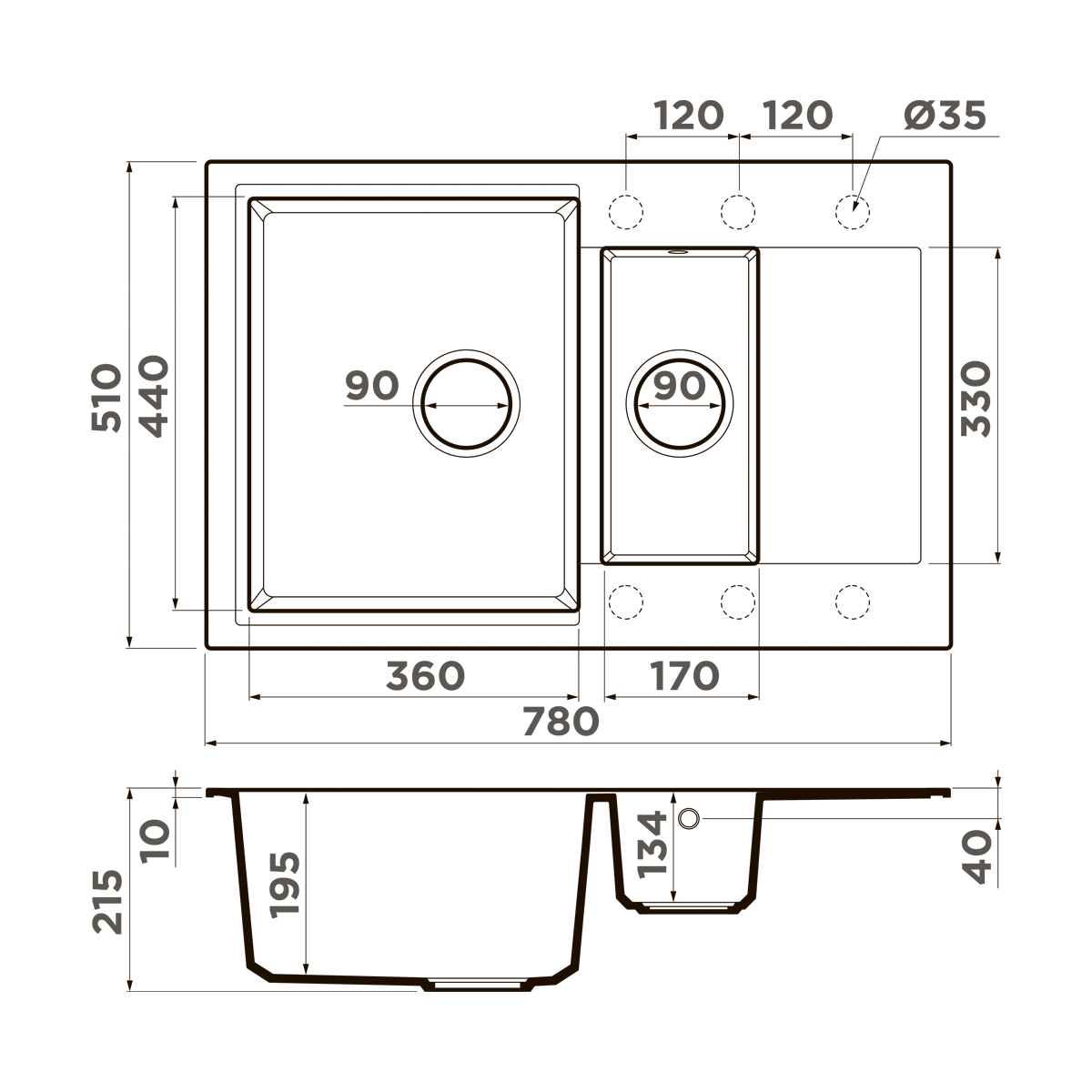 • Помимо гранита, в состав материала входит молотый кварц мельчайших размеров, которому характерны непревзойденная прочность и устойчивость к природным и химическим воздействиям. Свойства данного компонента вместе с долговечностью гранита обеспечивают мойке прочность и делают её устойчивой к любым механическим повреждениям: деформациям, сколам;