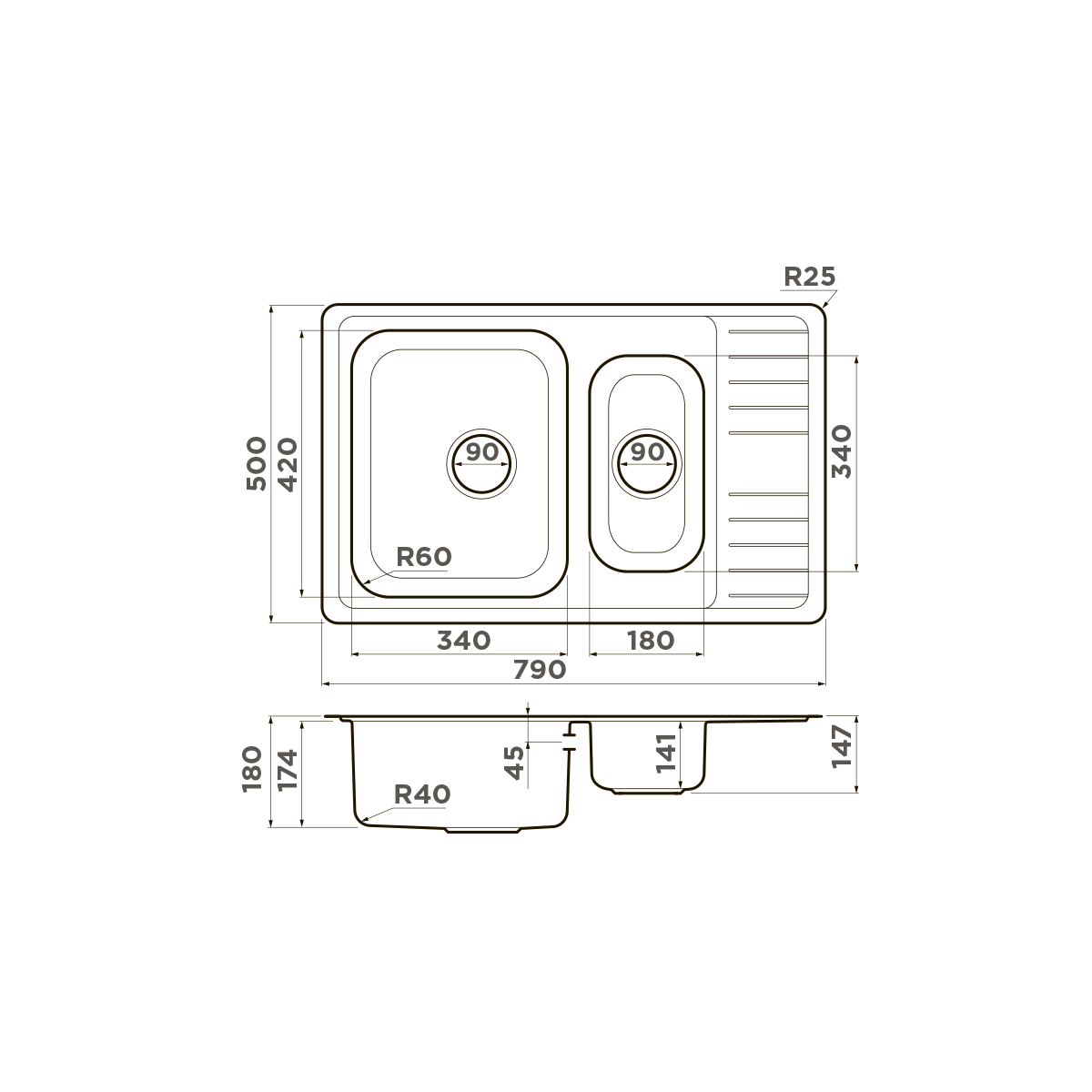 Кухонная мойка omoikiri sagami 79-2-in нерж. сталь/нержавеющая сталь 790 x 500 x 180