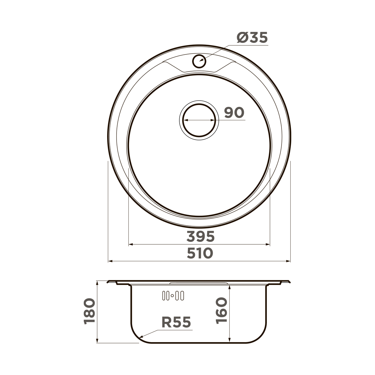 Кухонная мойка omoikiri asida 51-in нерж. сталь/нержавеющая сталь 510 x 510 x 160