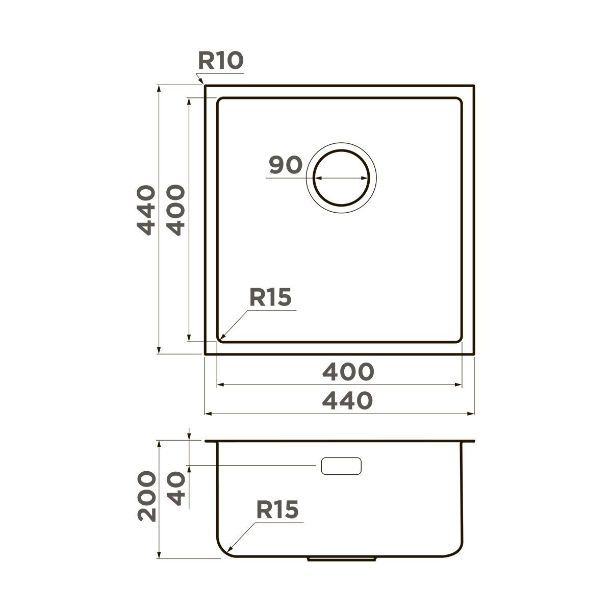 Кухонная мойка omoikiri tadzava 44-u/i ultra 15-in нерж. сталь/нержавеющая сталь 440 x 440 x 200