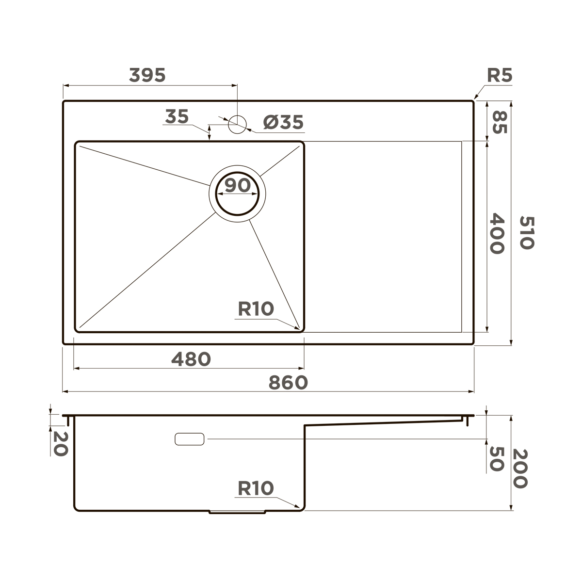 • Кухонная мойка OMOIKIRI изготовлена из высококачественной хромоникелевой нержавеющей стали SUS304. Она содержит 18% хрома и 8% никеля, что обеспечивает её максимальную защиту от коррозии;