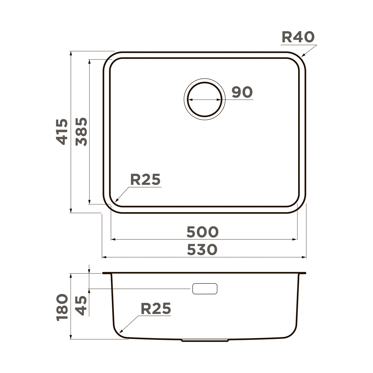 Кухонная мойка omoikiri omi 53-u/i ultra-in нерж. сталь/нержавеющая сталь 530 x 415 x 179
