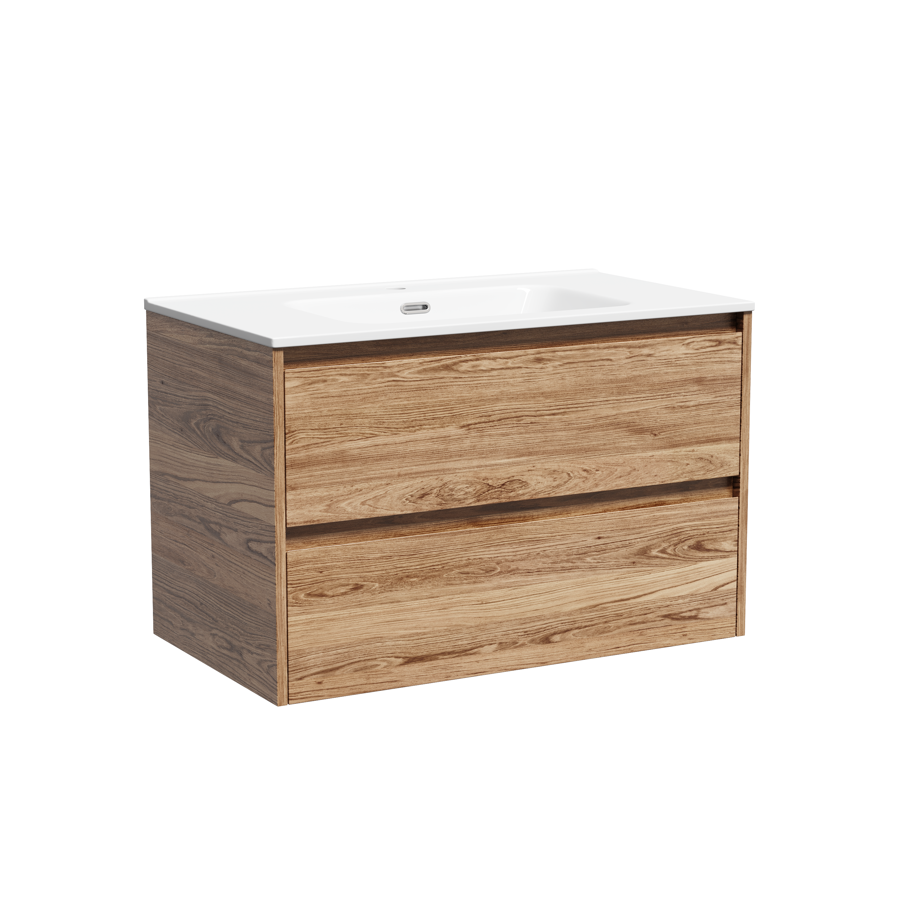 Тумба подвесная SANCOS Libra 790х450х500 c двумя ящиками оснащенными доводчиками скрытого монтажа с системой Soft close (плавного закрывания), c фрезерованными ручками по всей длине фасада, дуб чарльстон, арт. LB80ECH