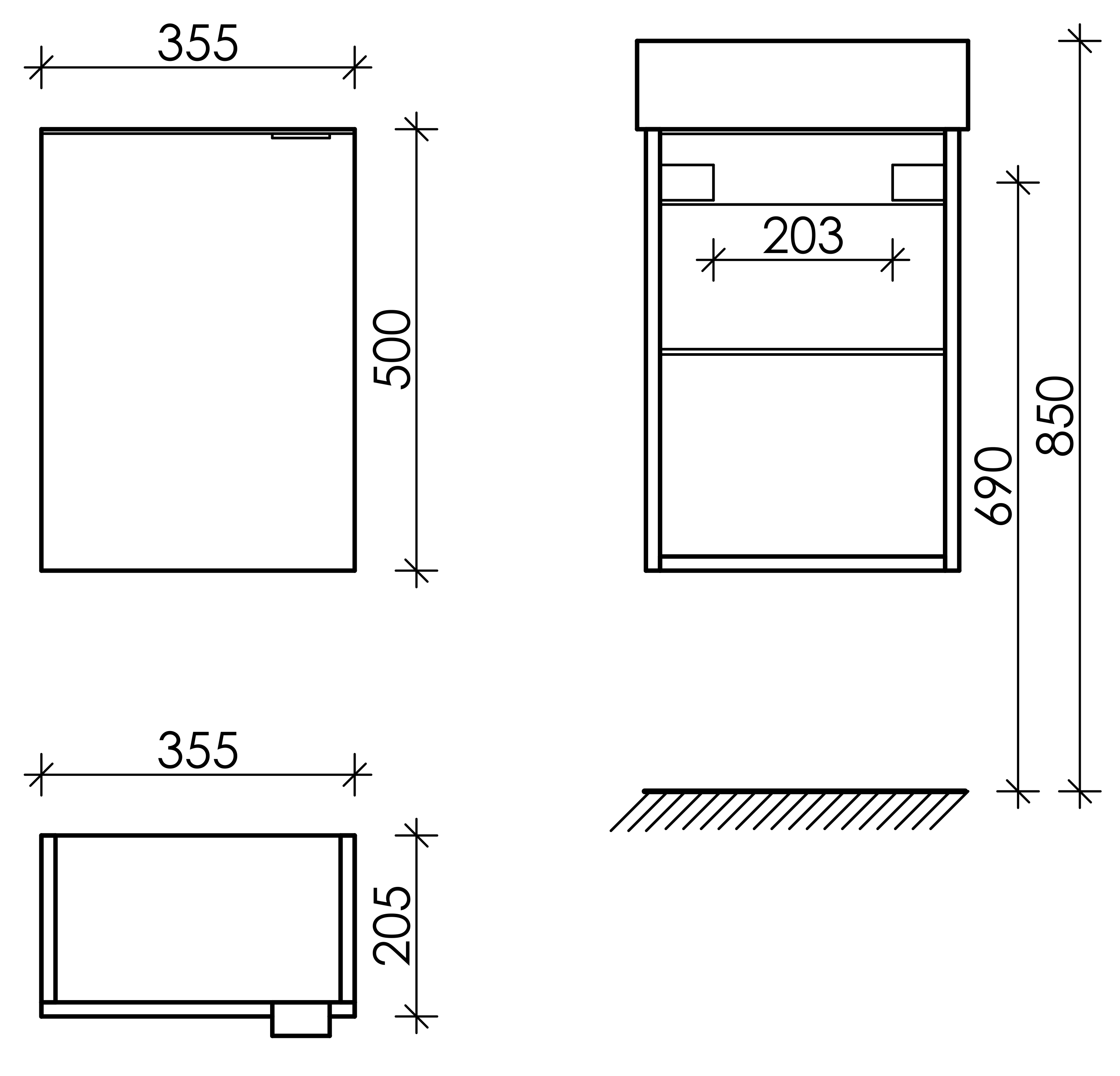 Тумба подвесная SANCOS Mini 355х205х500, с распашной дверцей, внутри 1 полка, левая, белый глянец , арт.MN35WL