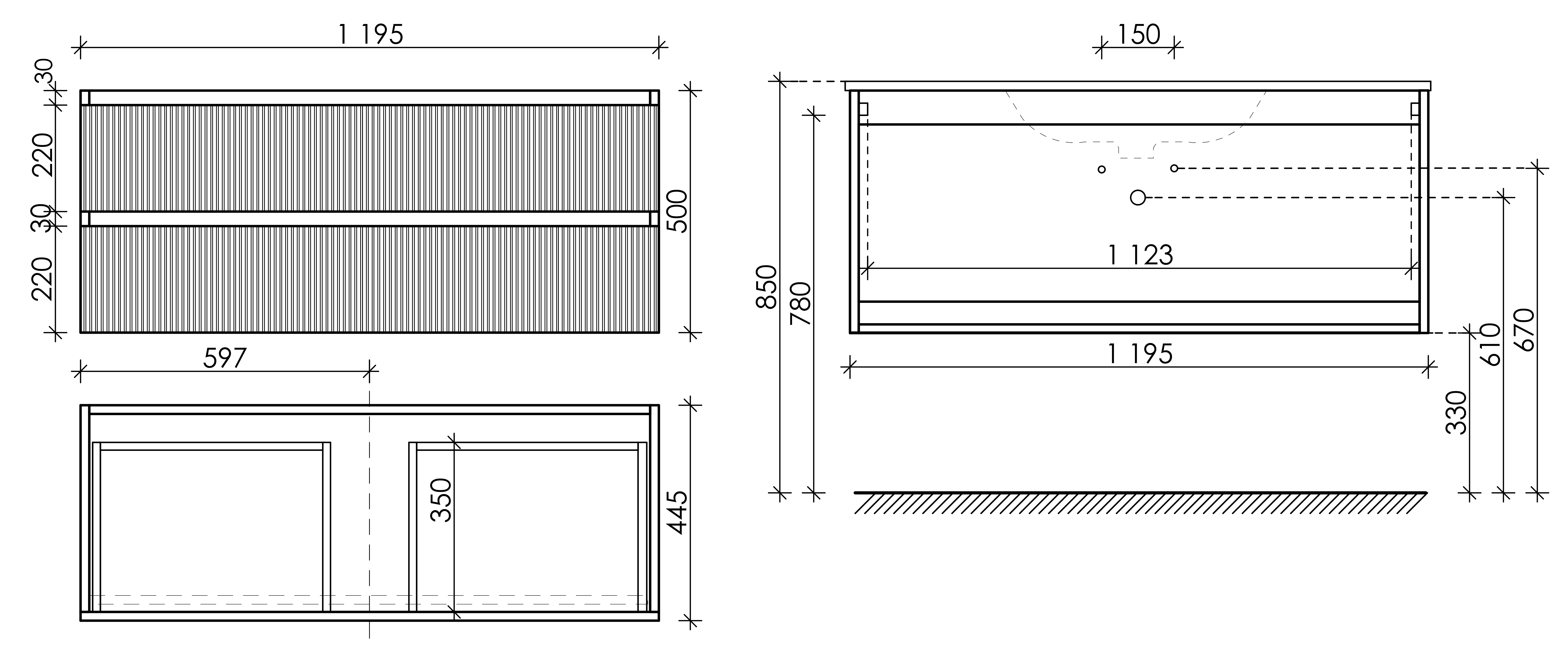 Тумба подвесная sancos snob t 1195х445х500, c двумя ящиками оснащенными доводчиками, bianco, арт.snt120w