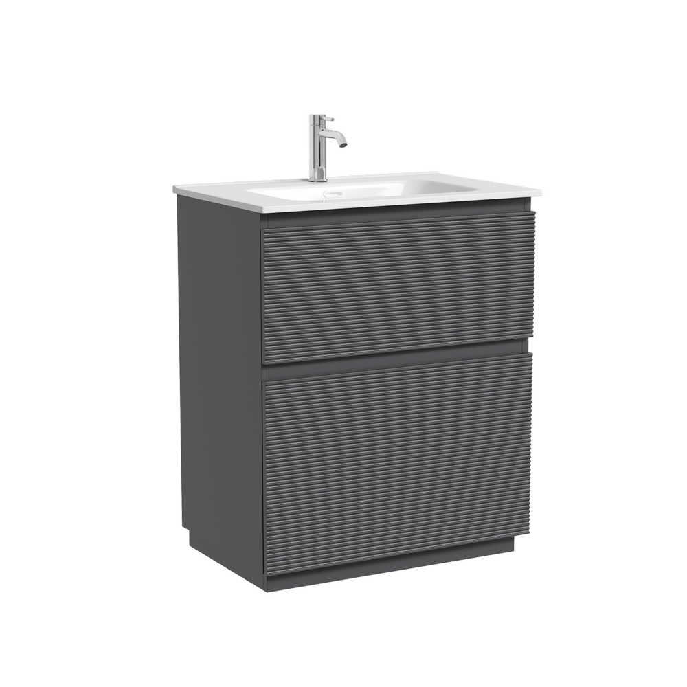 Тумба напольная с рельефным фасадом SANCOS Folk Floor 690х445х850, c двумя ящиками оснащенными доводчиками скрытого монтажа с системой плавного закрывания, цвет Grey soft, арт.FL70FGS