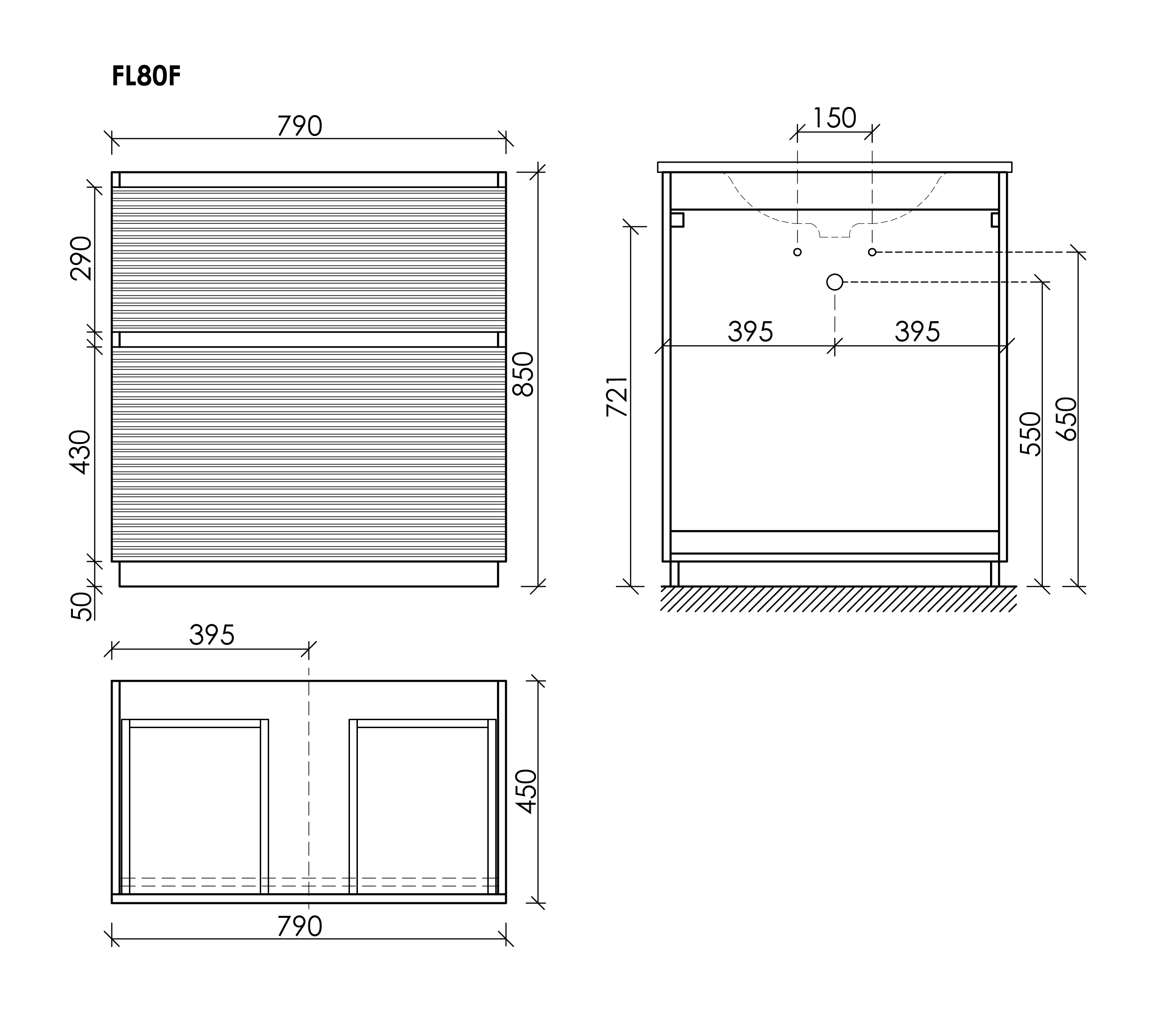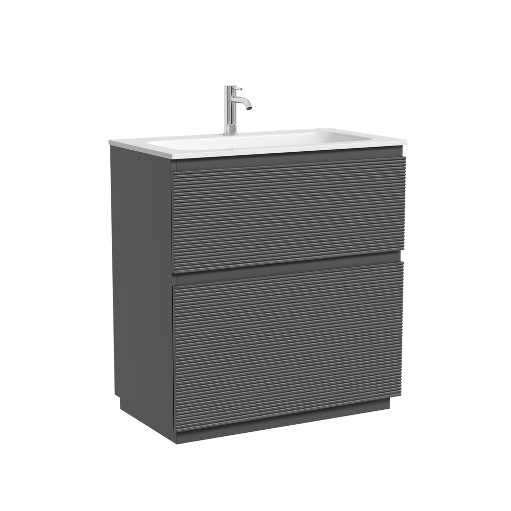 Тумба напольная с рельефным фасадом SANCOS Folk Floor 790х445х850, c двумя ящиками оснащенными доводчиками скрытого монтажа с системой плавного закрывания, цвет Grey soft, арт.FL80FGS