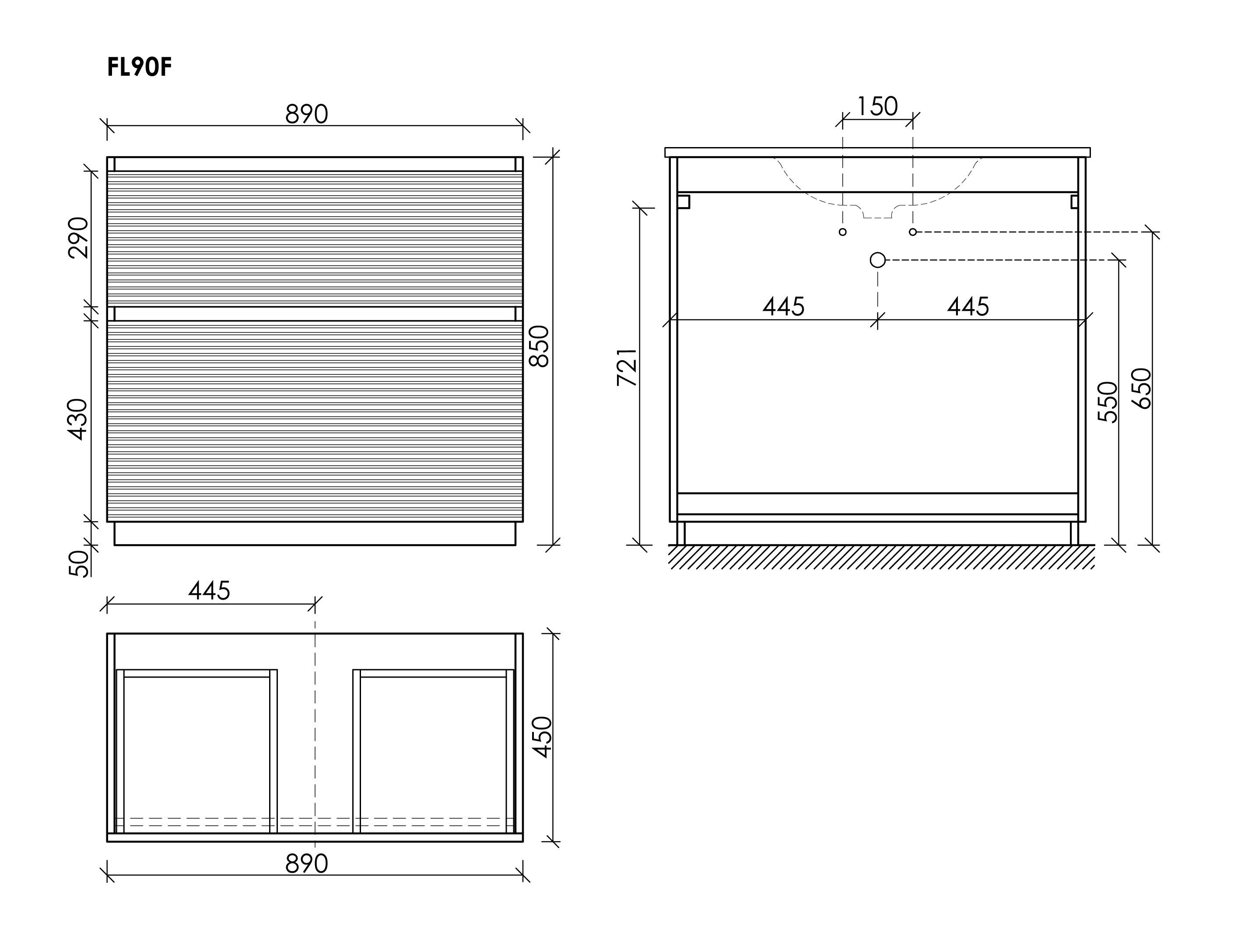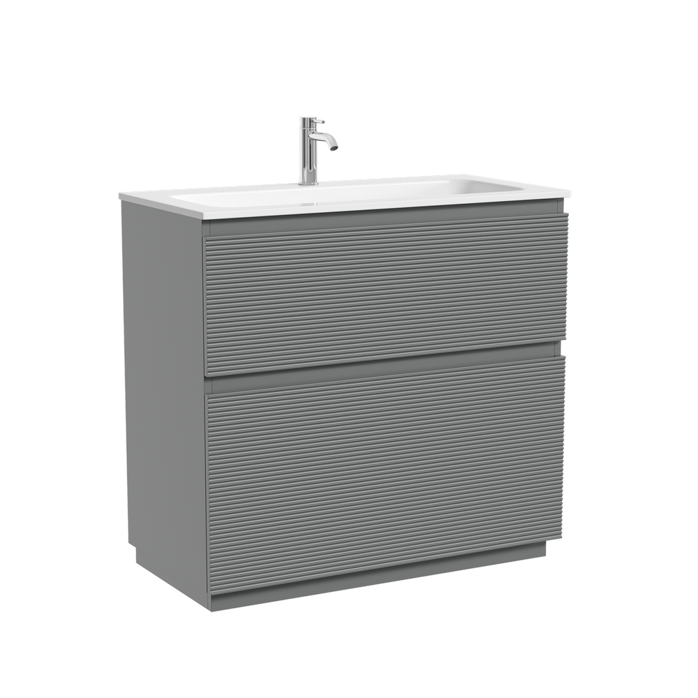 Тумба напольная с рельефным фасадом SANCOS Folk Floor 890х445х850, c двумя ящиками оснащенными доводчиками скрытого монтажа с системой плавного закрывания, цвет Ergraut soft, арт.FL90FES