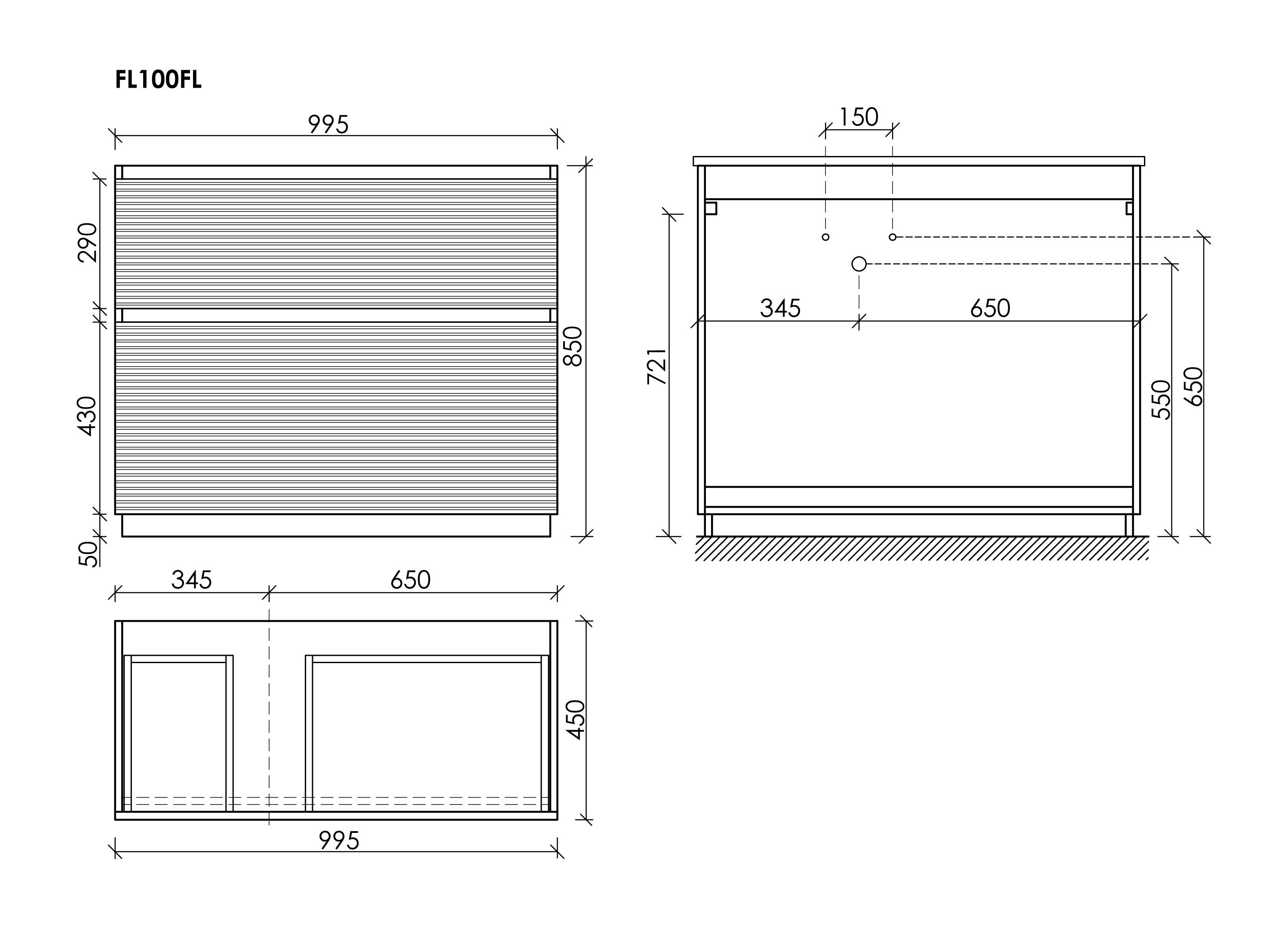 Тумба напольная SANCOS Folk Floor левая 995х445х850, c двумя ящиками оснащенными доводчиками, Bianco, арт.FL100FLW