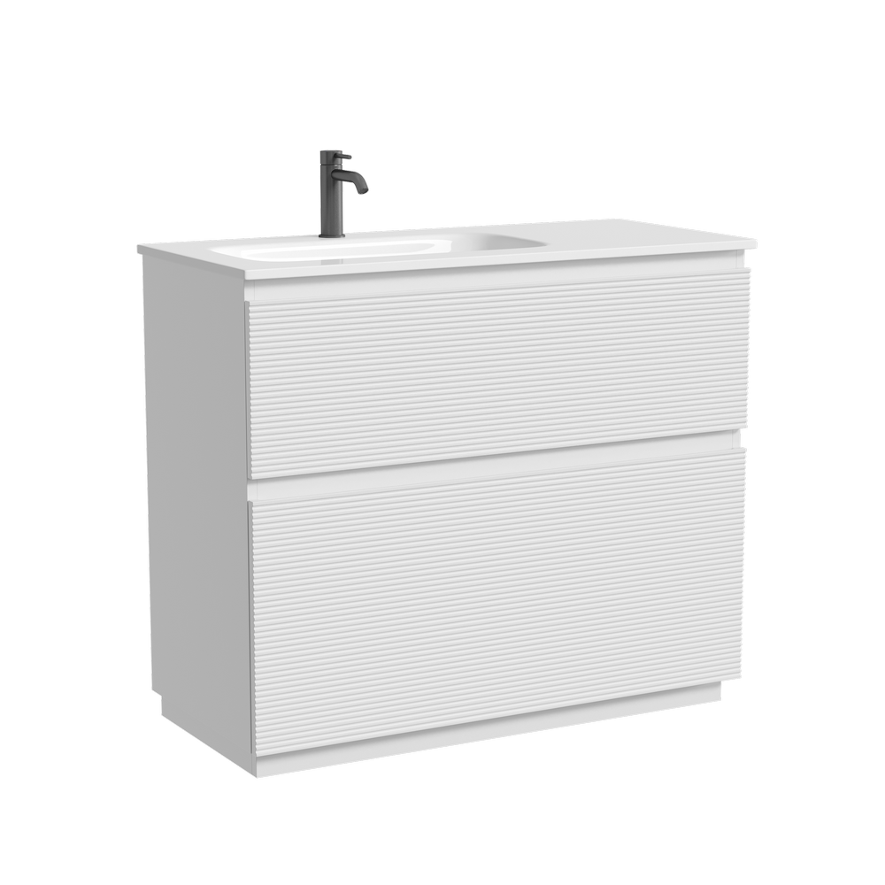 Тумба напольная с рельефным фасадом SANCOS Folk Floor левая 995х445х850, c двумя ящиками оснащенными доводчиками скрытого монтажа с системой плавного закрывания, цвет Bianco, арт.FL100FLW