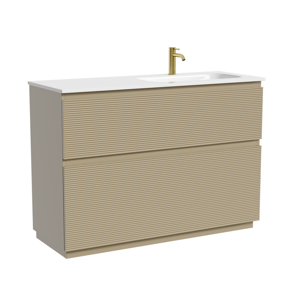 Тумба напольная с рельефным фасадом SANCOS Folk Floor правая 1190х445х850, c двумя ящиками оснащенными доводчиками скрытого монтажа с системой плавного закрывания, цвет Капучино, арт.FL120FRCP
