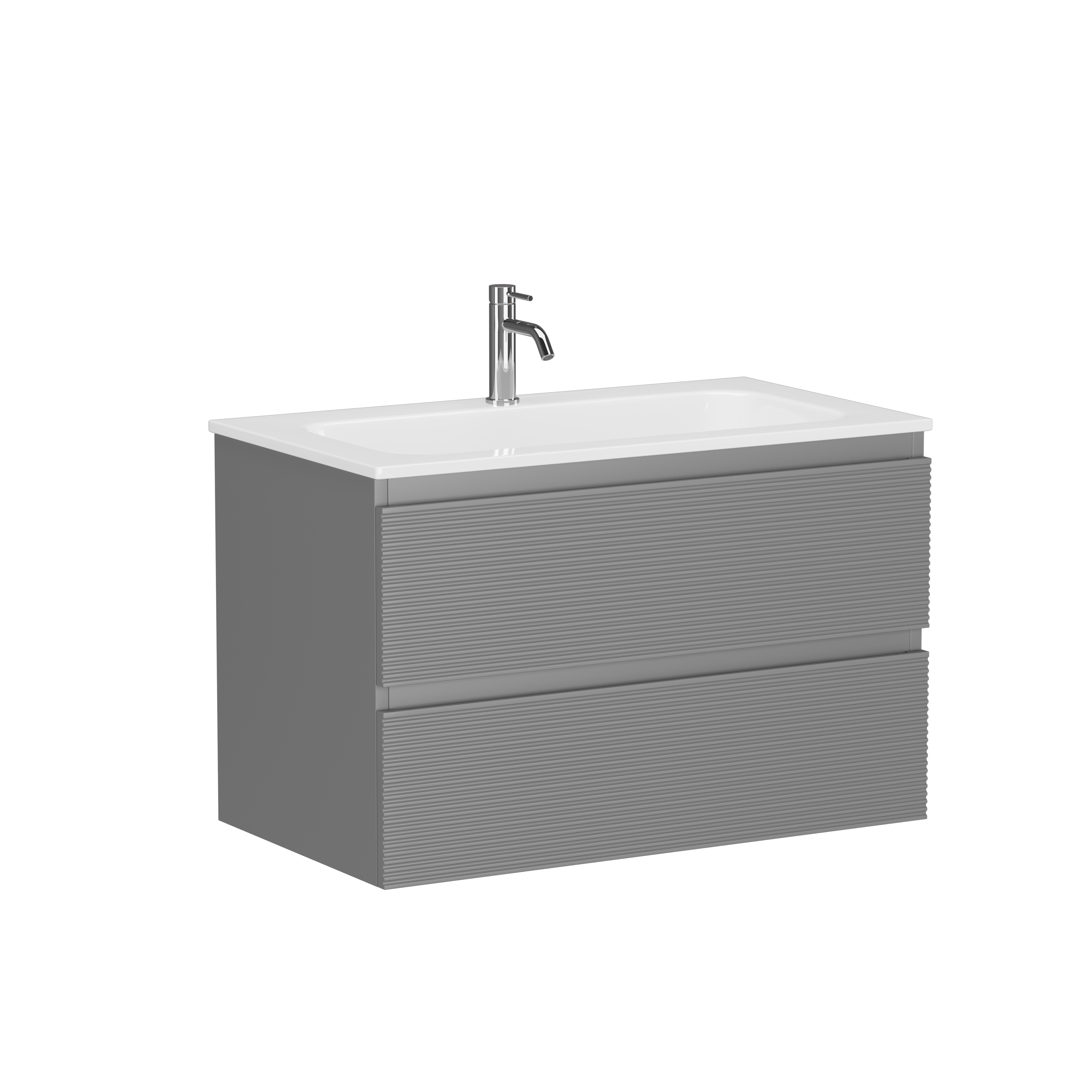 Тумба подвесная с рельефным фасадом SANCOS Folk 790х445х500, c двумя ящиками оснащенными доводчиками скрытого монтажа с системой плавного закрывания, цвет Ergraut soft, арт.FL80ES