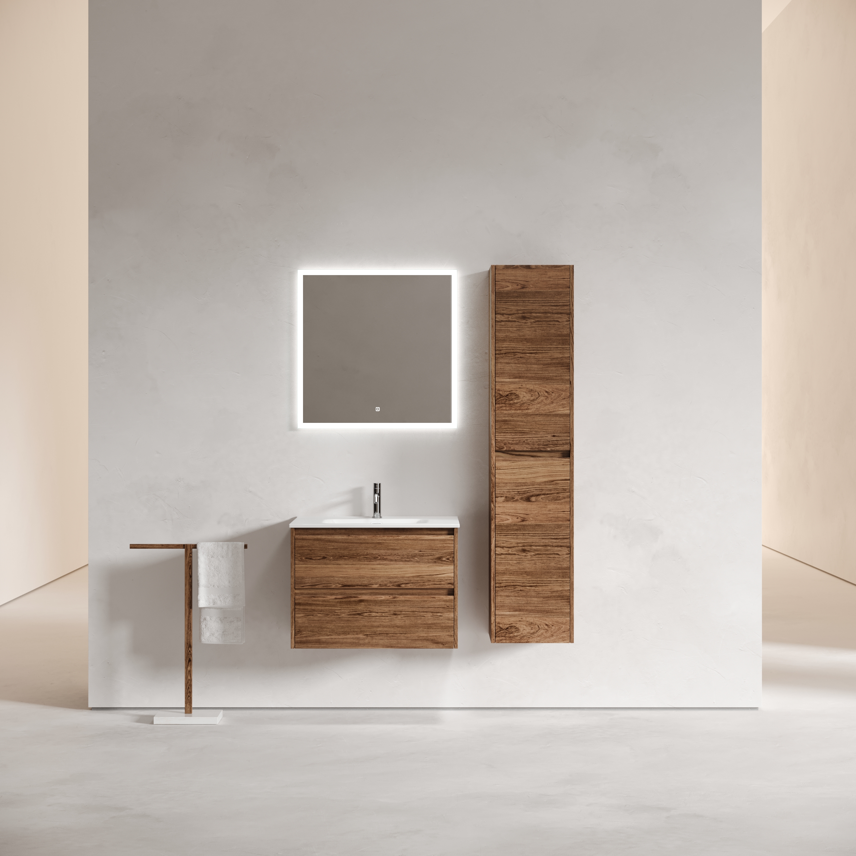 Тумба подвесная SANCOS Libra 690х450х500 c двумя ящиками оснащенными доводчиками скрытого монтажа с системой Soft close (плавного закрывания), c фрезерованными ручками по всей длине фасада, дуб чарльстон, арт. LB70ECH