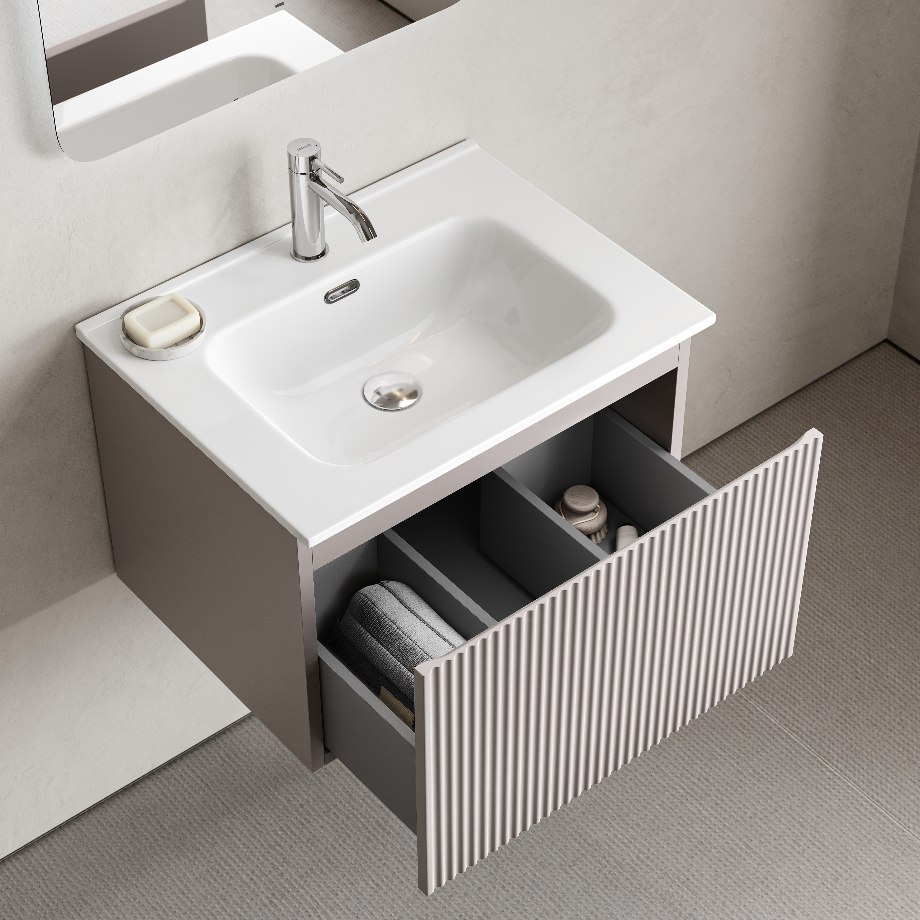 Тумба подвесная SANCOS Snob R 1.0 590х445х406, c одним ящиком оснащенным доводчиками скрытого монтажа с системой Soft close (плавного закрывания), Doha Soft , арт. SNR1.060SM