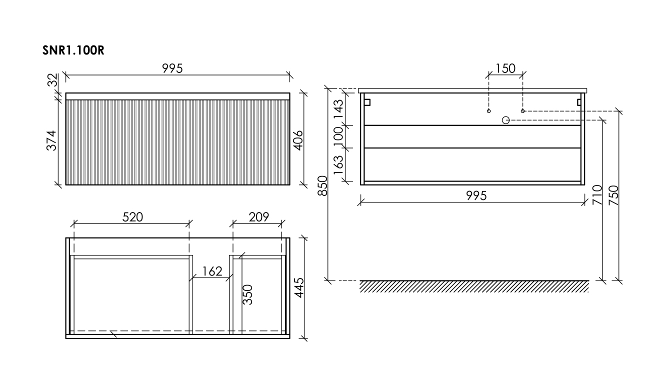 Тумба подвесная SANCOS Snob R 1.0 995х445х406, c одним ящиком оснащенным доводчиками скрытого монтажа с системой Soft close (плавного закрывания), Doha Soft , арт.SNR1.0100RSM