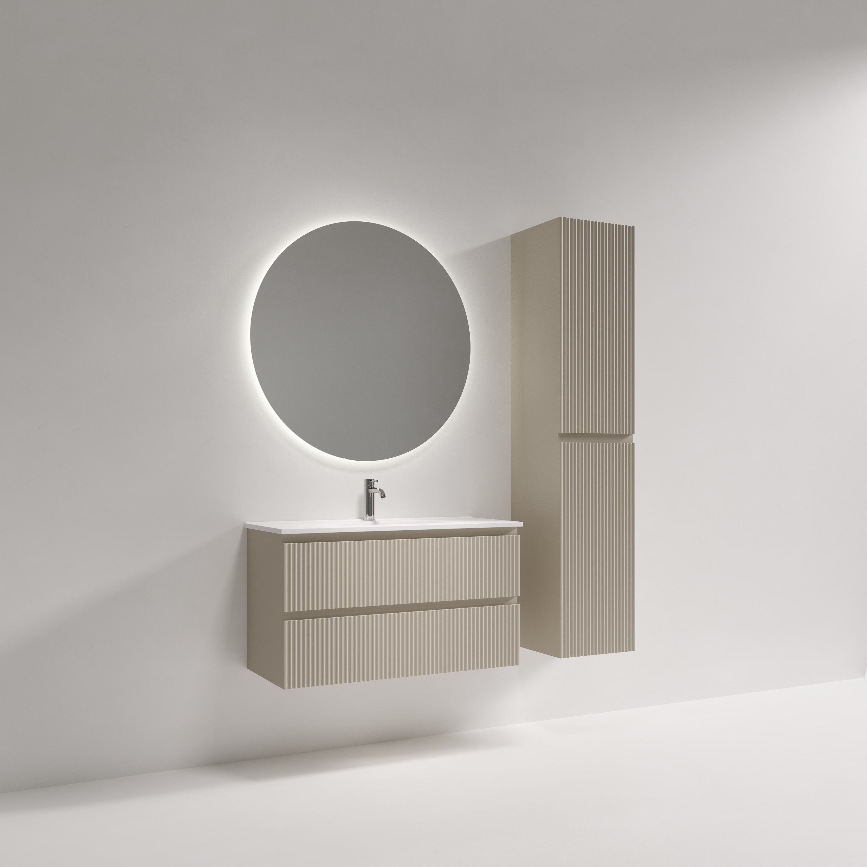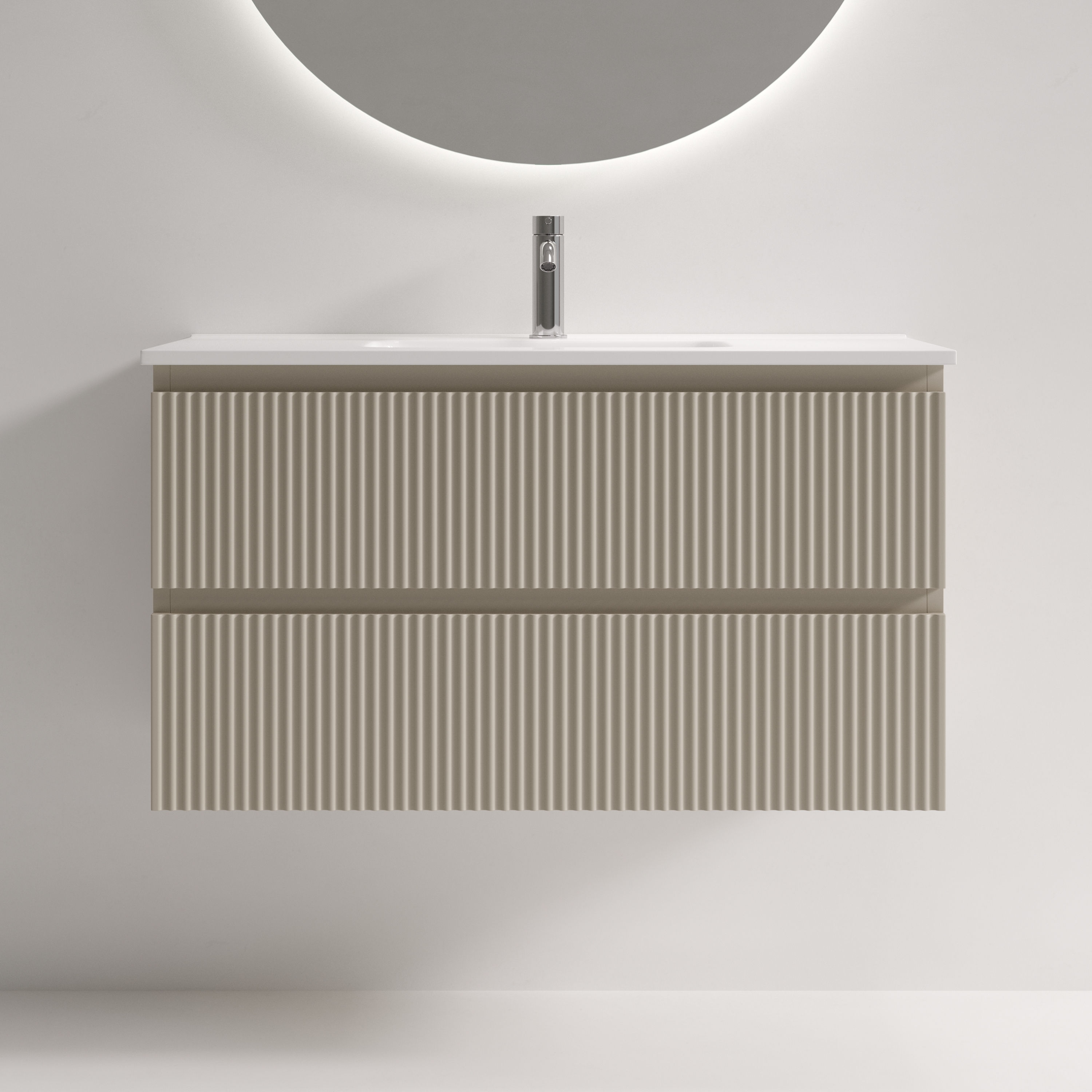 Тумба подвесная SANCOS Snob R 890х390х500, c двумя ящиками оснащенными доводчиками скрытого монтажа с системой Soft close (плавного закрывания), Beige Soft , арт.SNR90/39CE