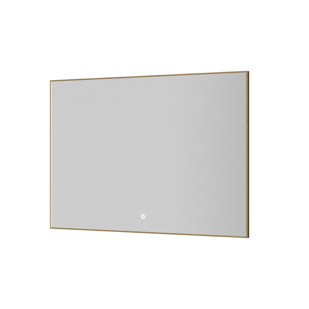 Прямоугольное зеркало , мет. рама, подсв., сенсор, антизапотевание, 100*70 matt gold