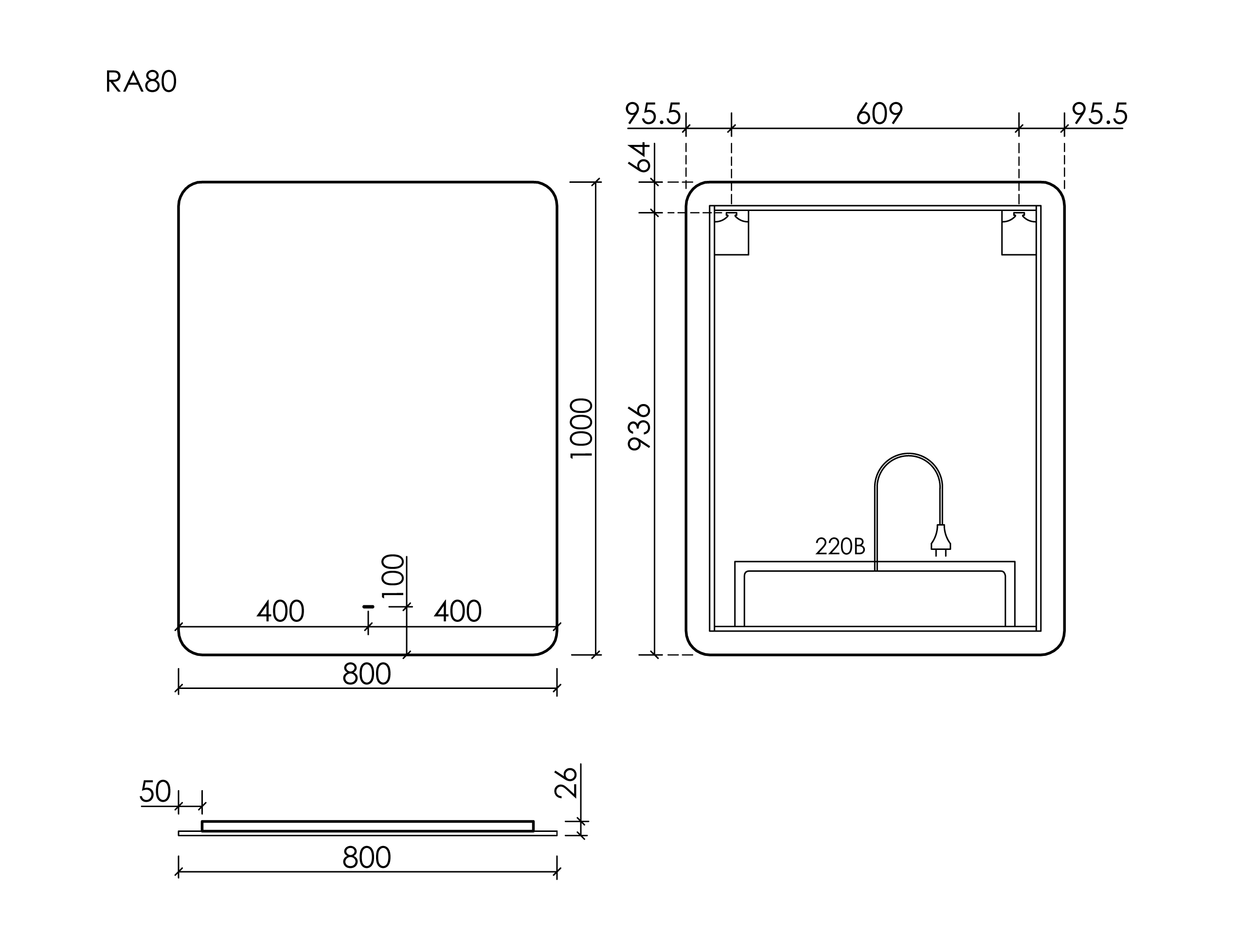 Зеркало для ванной комнаты SANCOS Ray 800х1000 c подсветкой 6000K, выключатель на взмах, диммируемая регулировка подсветки, арт. RA800