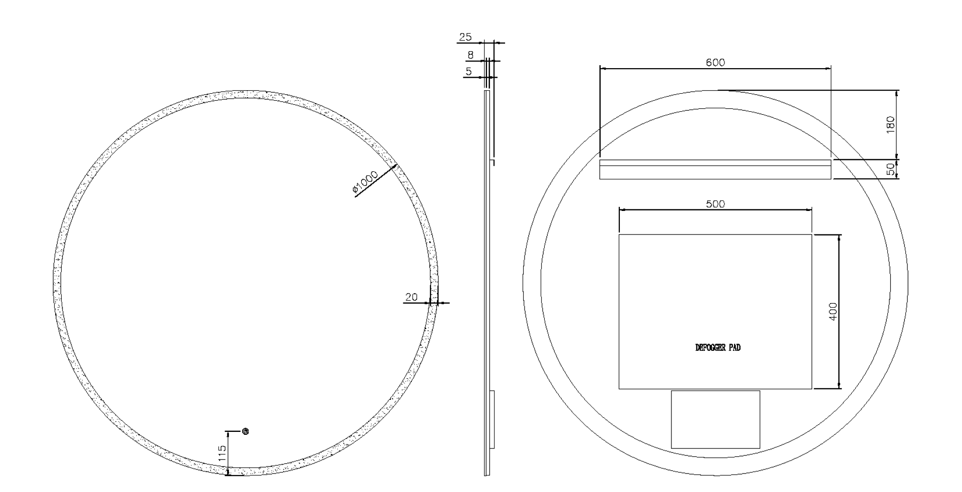 Зеркало круглое , мет. рама, подсв., сенсор, антизапотевание, d100cm, gold