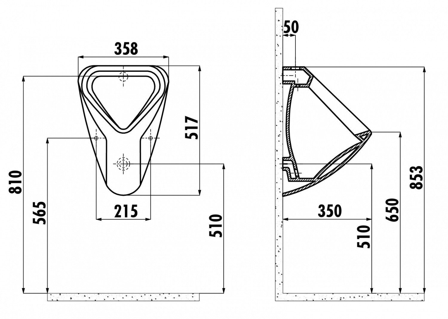 Creavit tp630-00cb00e-0000 писсуар подвесной под скрытый налив (белый глянцевый)