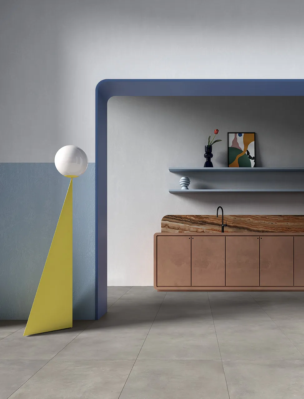 размера 60x120, серого цвета. Данный вид керамогранита, имитирующий бетон,