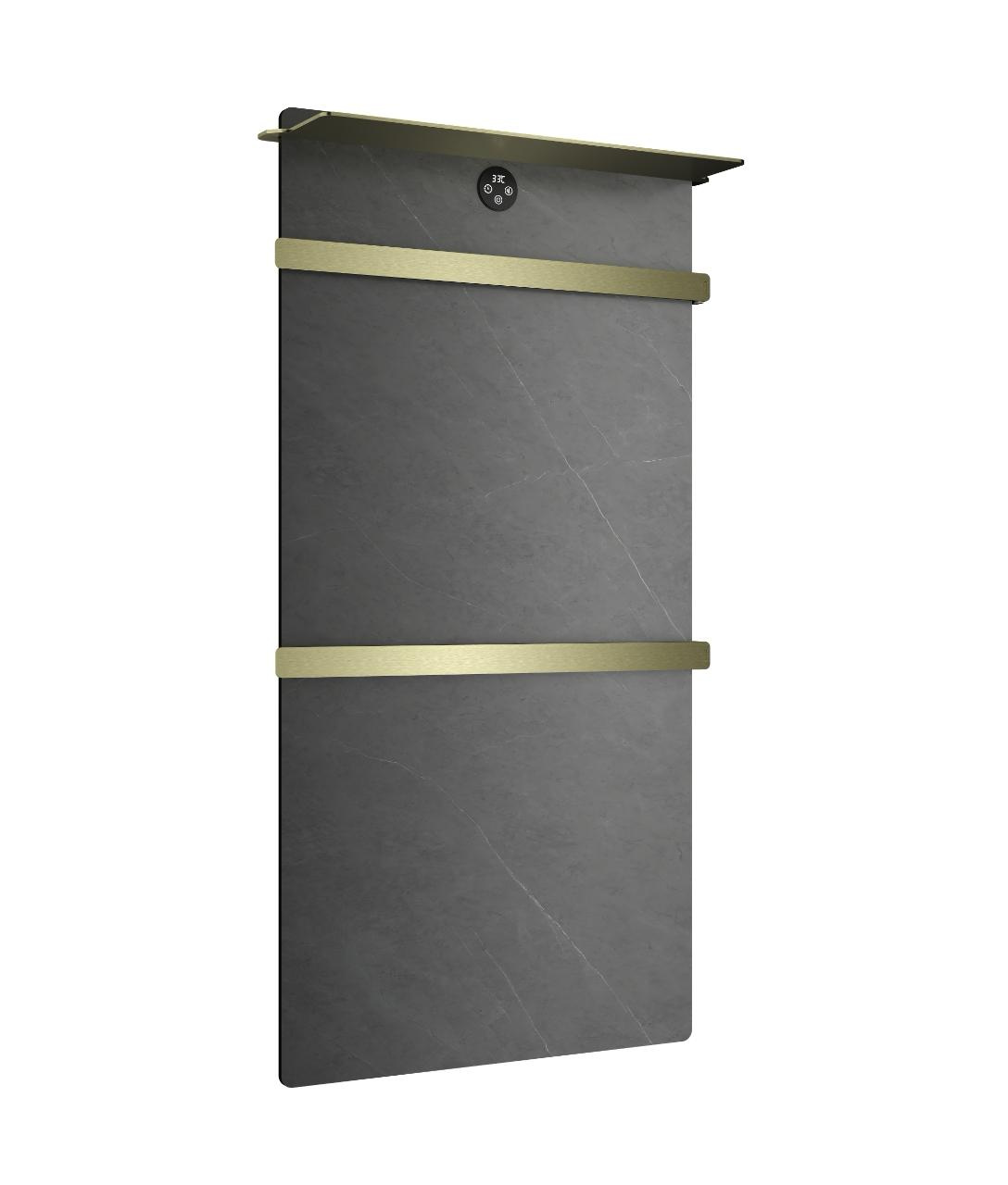 Полотенцесушитель электрический с каменной плитой серый мрамор wonzon & woghand stuttgart, брашированное золото (ww-a504g-bg)