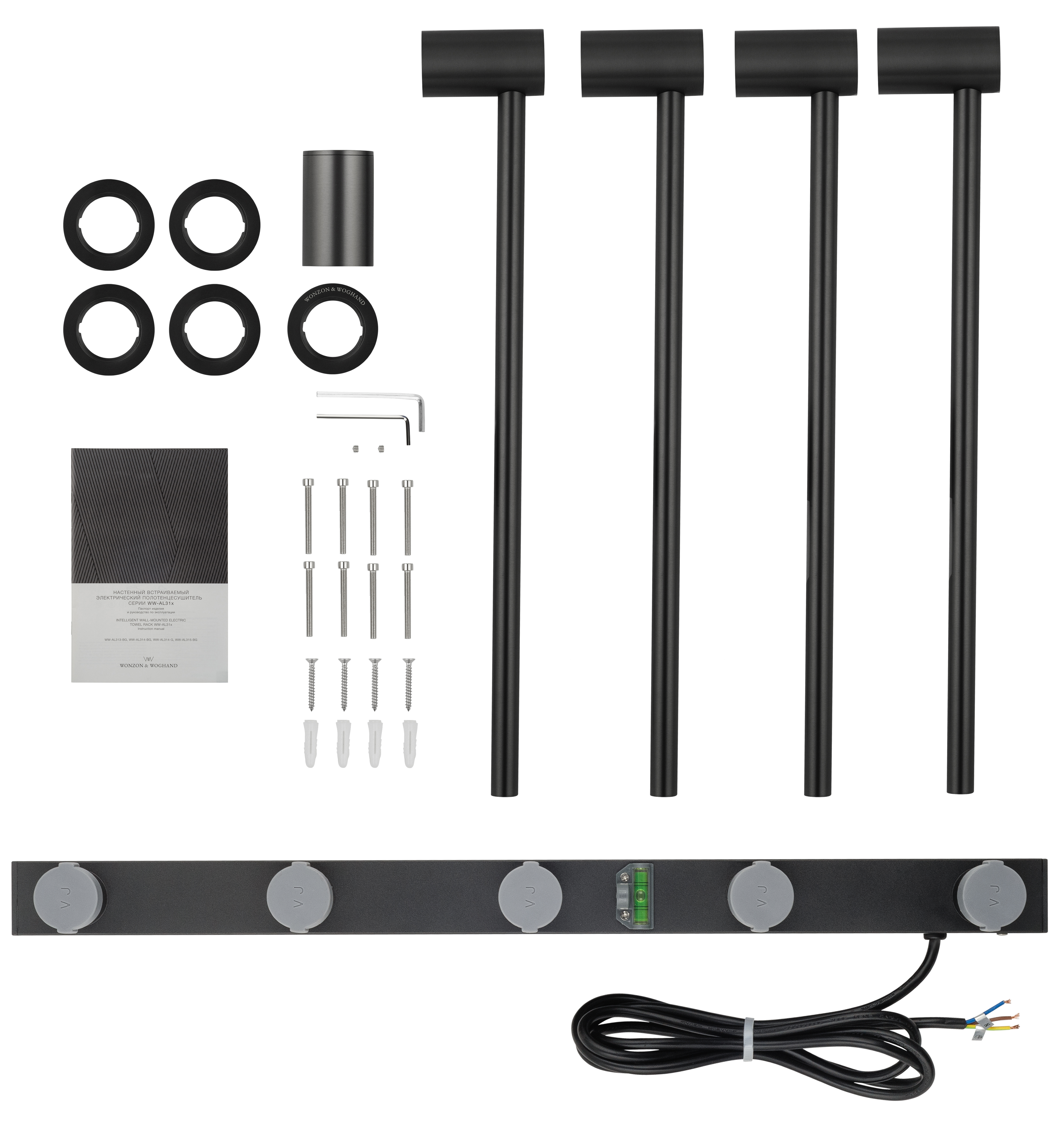 Полотенцесушитель электрический встраиваемый wonzon & woghand hamburg, черный матовый (ww-al314-mb)